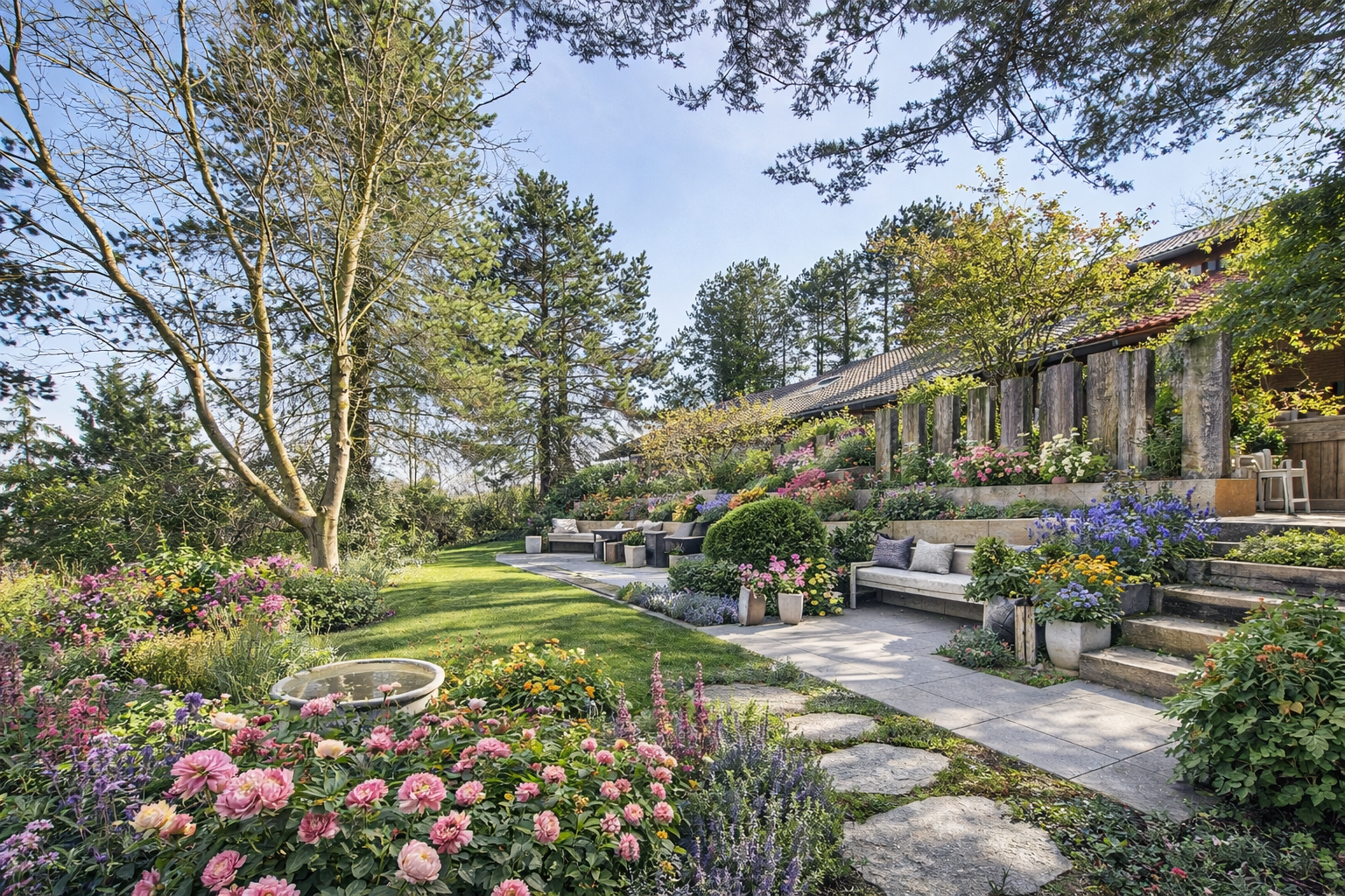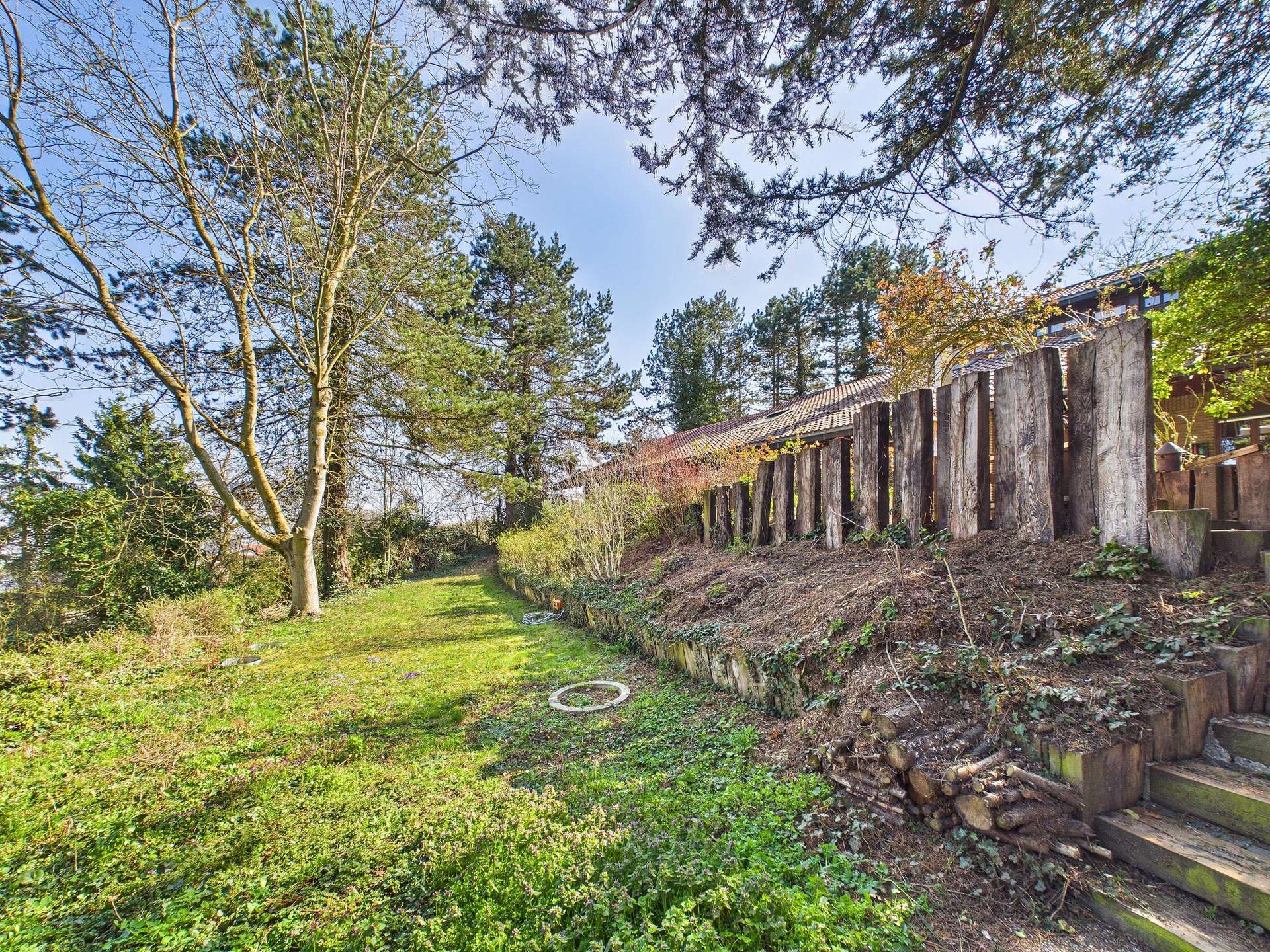Das außergewöhnlich große Grundstück bietet darüber hinaus enormes Potenzial. Hier kann eine private, nahezu uneinsehbare Garten- und Terrassenlandschaft entstehen; eine ganz persönliche Oase mit hohem Maß an Privatsphäre. Besonders reizvoll ist dabei, dass das Grundstück theoretisch sogar die Qualität eines zusätzlichen Baugrundstücks in sich trägt und damit zusätzliche Perspektiven eröffnet.