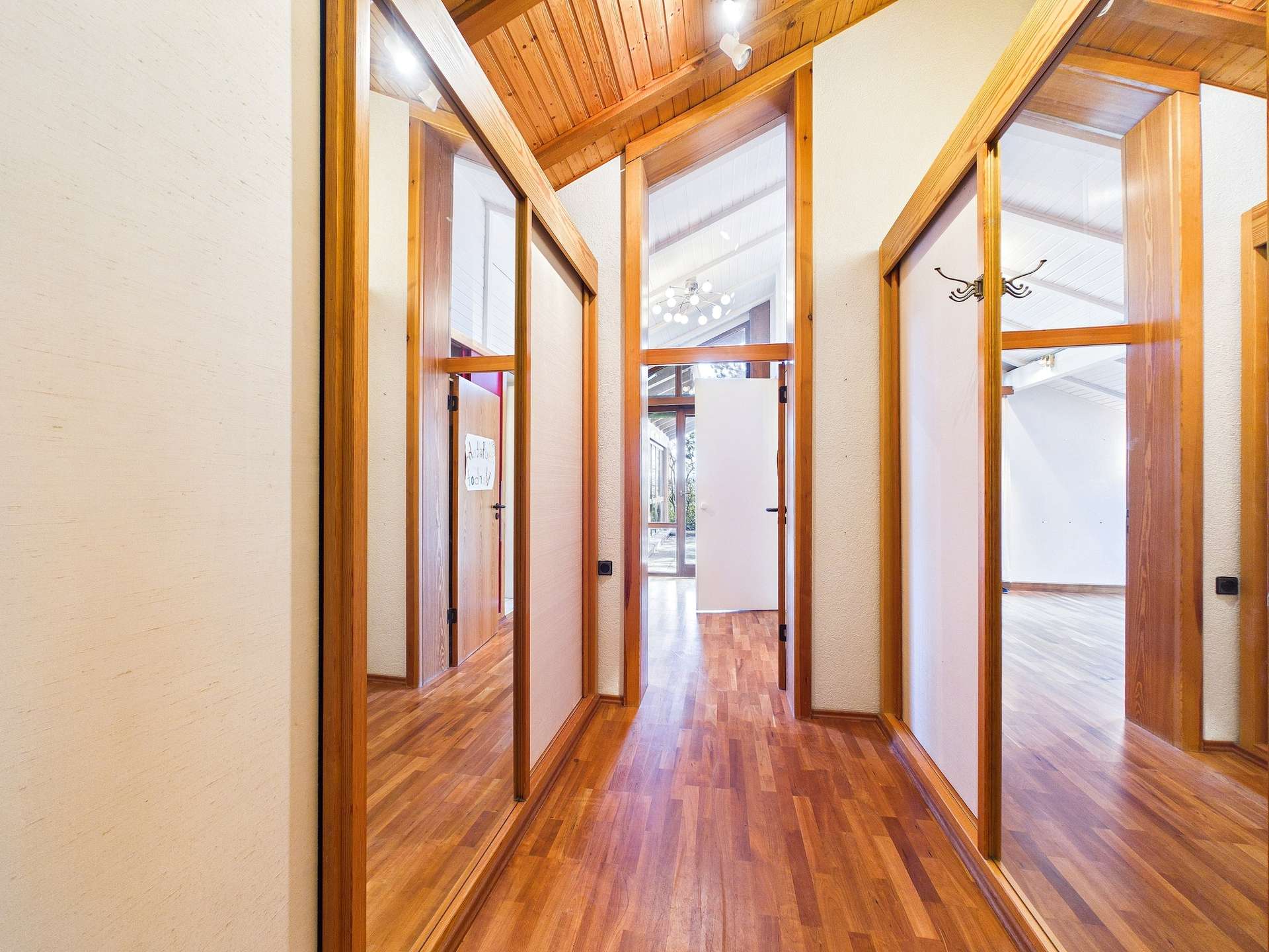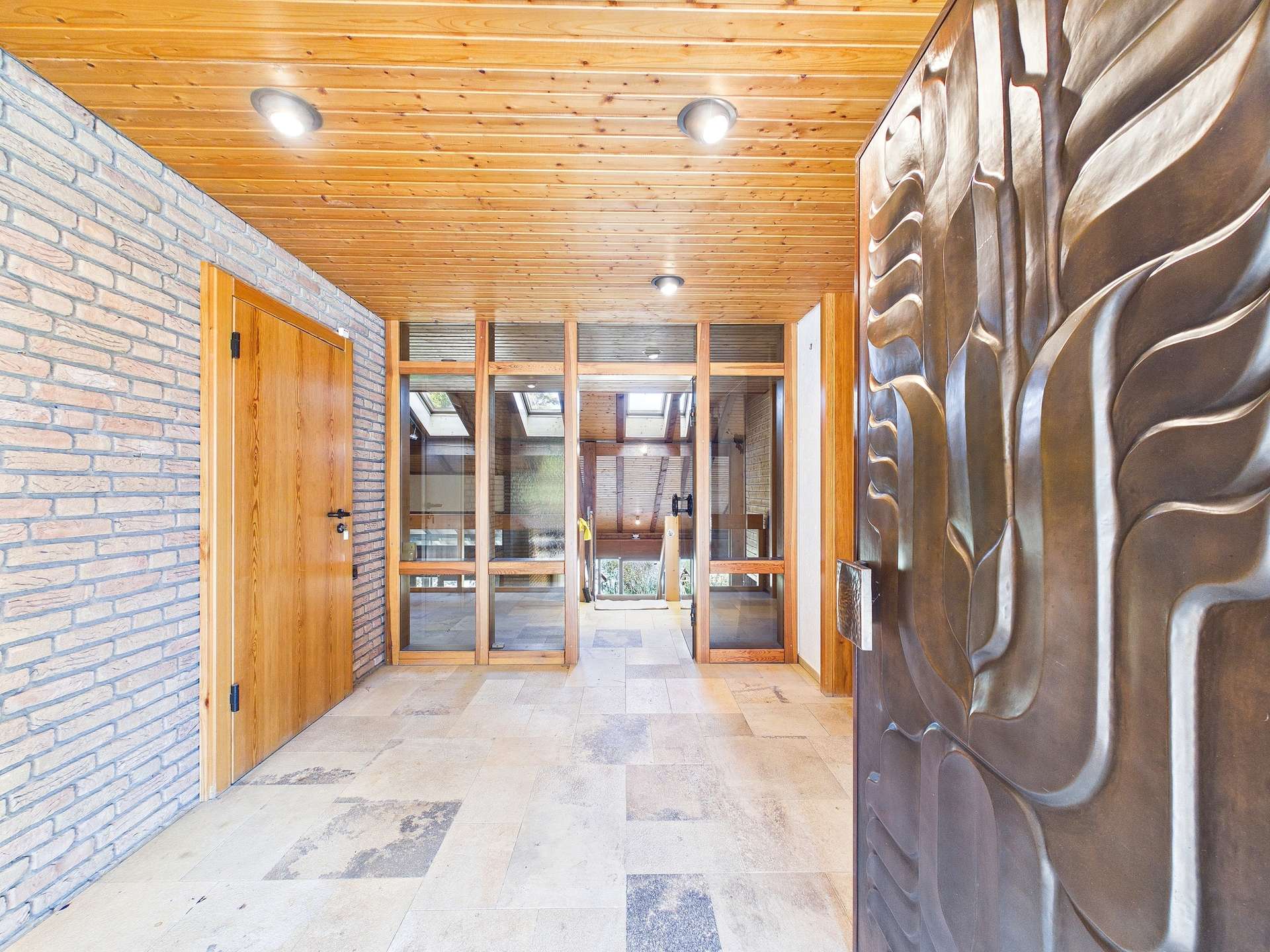Schon das Entrée empfängt Sie mit einer einladenden Präsenz. Sie betreten die Diele und spüren unmittelbar die besondere Architektur dieses Hauses. Zur rechten Seite befindet sich die Garderobe, zur linken Seite die direkt angebundene Doppelgarage; komfortabel, praktisch und ideal, um Fahrzeuge geschützt unterzubringen und Einkäufe trockenen Fußes ins Haus zu bringen.