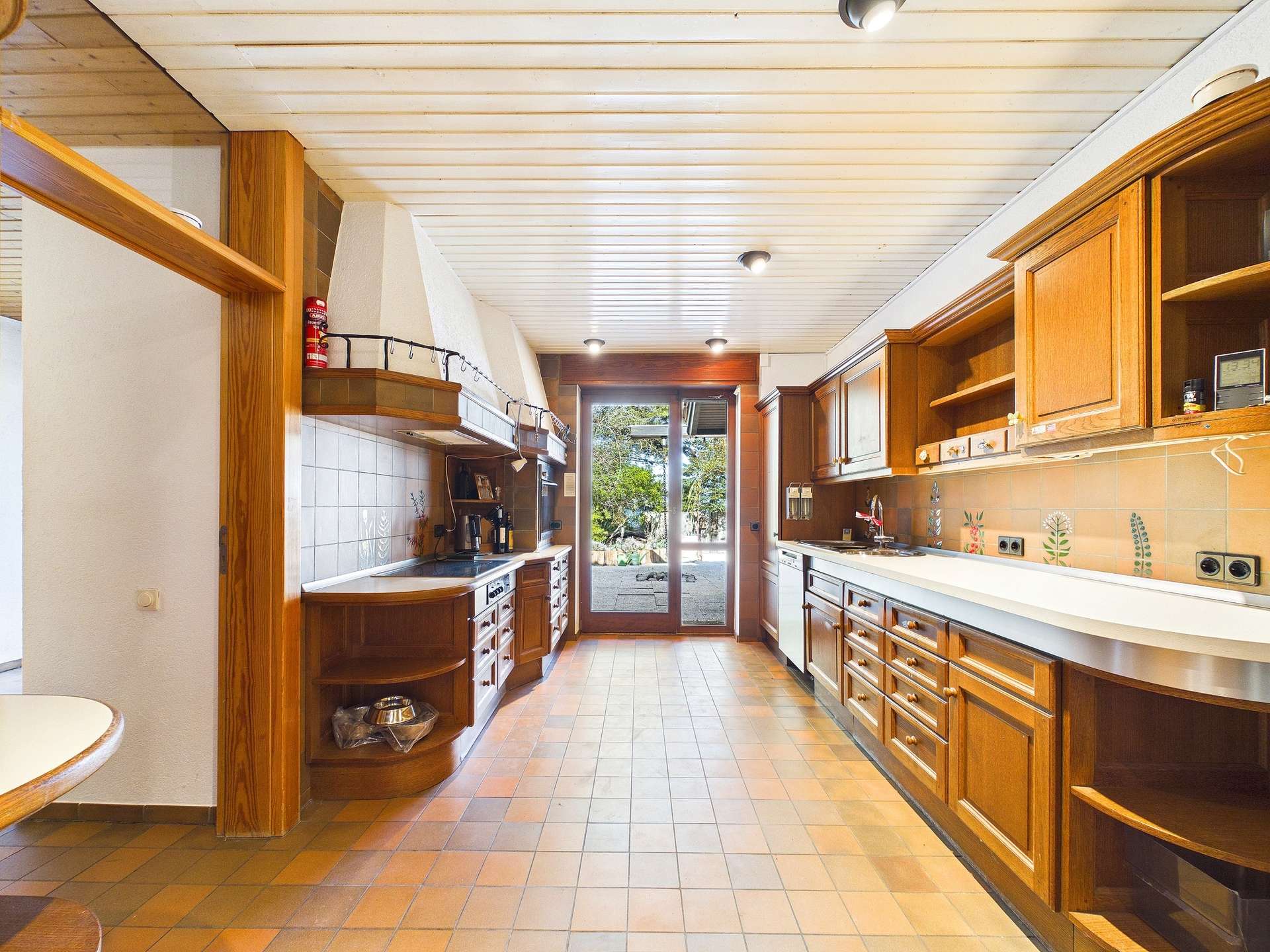 Auch technisch und in der Ausstattung überzeugt die Immobilie mit einer hochwertigen Grundlage: Im Haus ist weitgehend Fußbodenheizung verlegt, ausgenommen die Garage sowie die Werkstatt im Untergeschoss. Zusätzlich verfügen einzelne Räume über eine Klimaanlage. Die verwendeten Bodenbeläge aus Solnhofener Platten, Fliesen und Parkett unterstreichen den hochwertigen und charakterstarken Gesamteindruck.
