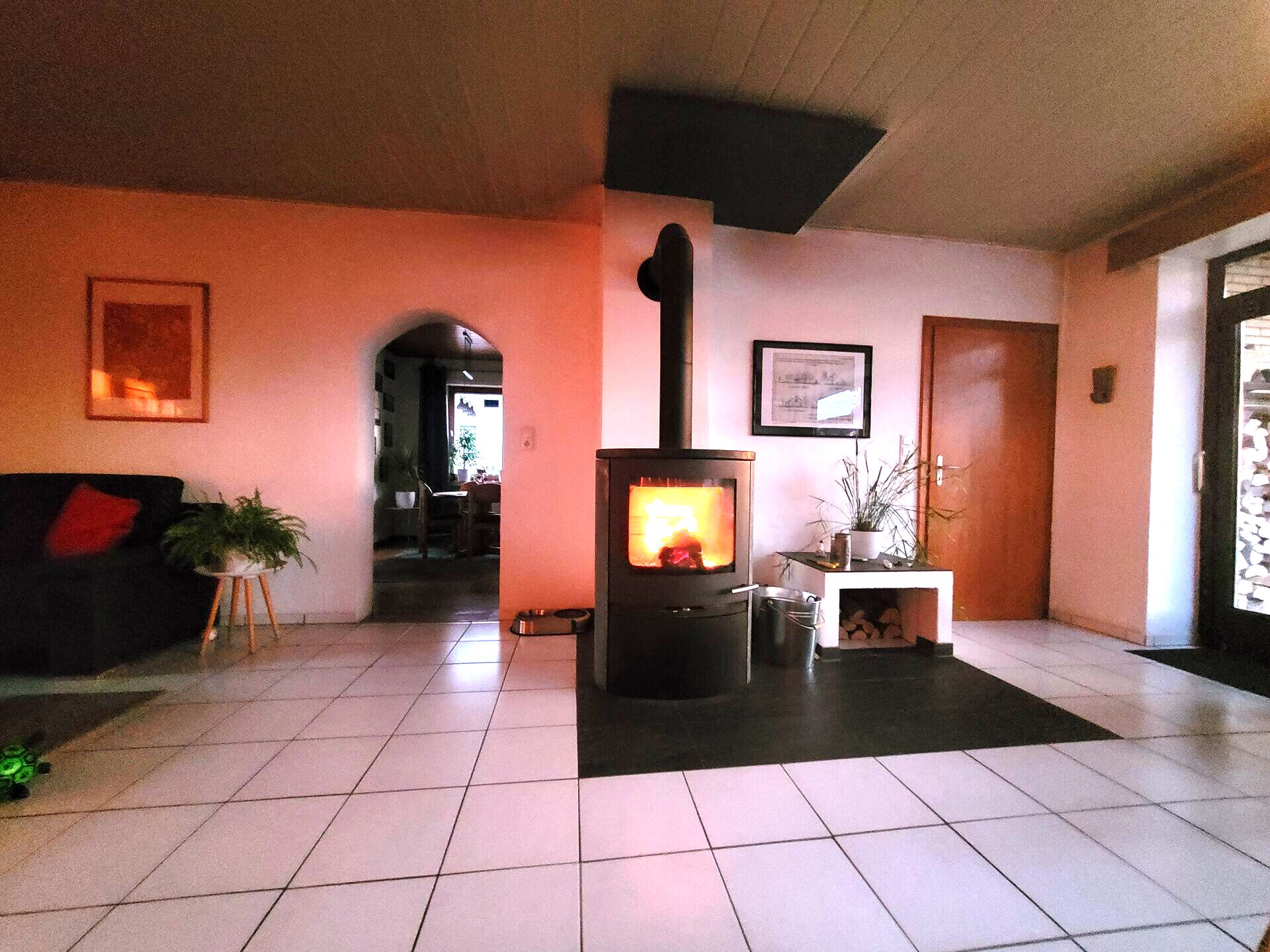 Das Herzstück ist das lichtverwöhnte Wohnzimmer: Große Fensterfronten holen die Natur direkt ins Haus und bieten einen unverbaubaren Blick in den grünen Garten. Ein knisternder Kaminofen sorgt an kühlen Abenden für wohlige Wärme und echte Geborgenheit. Besonders beruhigend für Käufer: Das Haus wurde seinerzeit von einem Bauingenieur für den Eigenbedarf geplant – hier trifft solide Bauqualität auf eine durchdachte Wohlfühlatmosphäre.