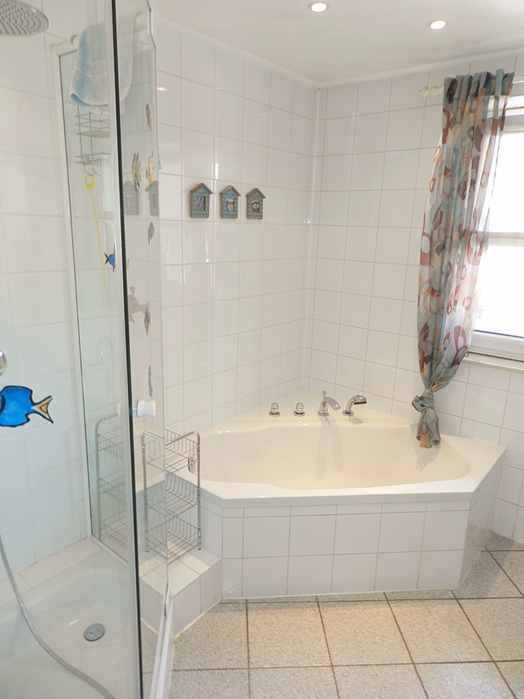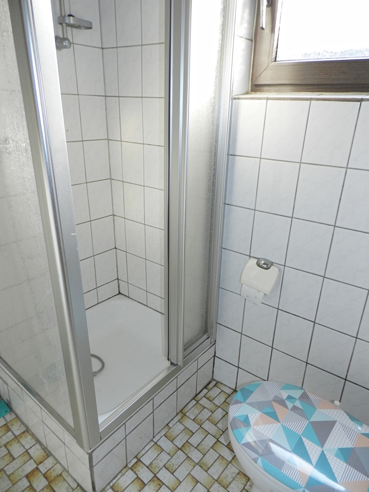 Im ersten Obergeschoss sind drei Schlafzimmer, ein helles, renoviertes Badezimmer mit Wanne und Dusche, ein großer Balkon mit Markise und Überdachung. Als Nutzflächen stehen dieser Wohneinheit ein begehbarer Dachboden und Kellerräume zur Verfügung. In einem dieser Keller steht die Öl-Zentralheizung, die Wohneinheit 1 und 3 mit Warmwasser und Heizung versorgt (4 Doppelwandige-Öltanks à 1000l).