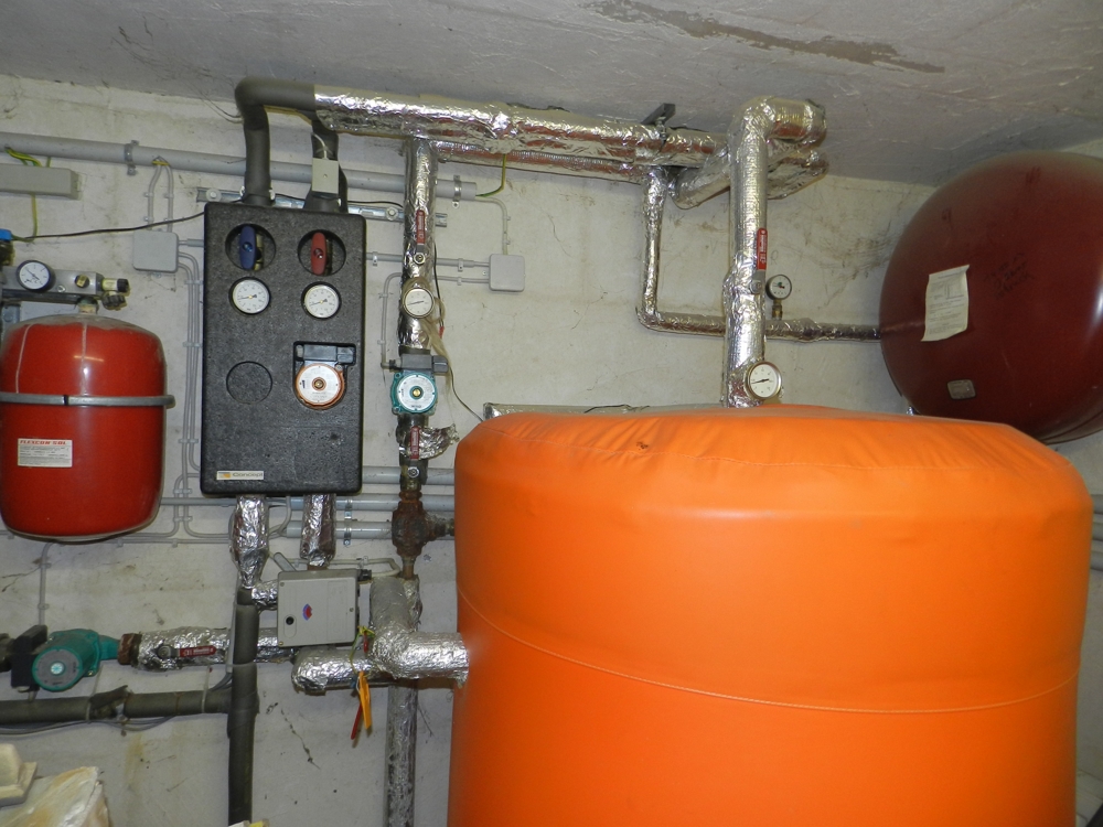 Auf Höhe der Hoffläche bzw. der Stellplätze befinden sich weitere Nutz- und Lagerflächen, die zu den verschiedenen Wohnungen zugeordnet werden können sowie der Technik- und Heizungsraum der Wohneinheit 2 mit jeweils einem Pufferspeicher für den Kachelofen (darf weiter betrieben werden) und die Solarthermie-Anlage zur Warm-Wasserbereitung. In diesem frostgeschützten Raum befinden sich ebenfalls Waschmaschine, Trockner und großer Tiefkühlschrank dieser Wohneinheit.