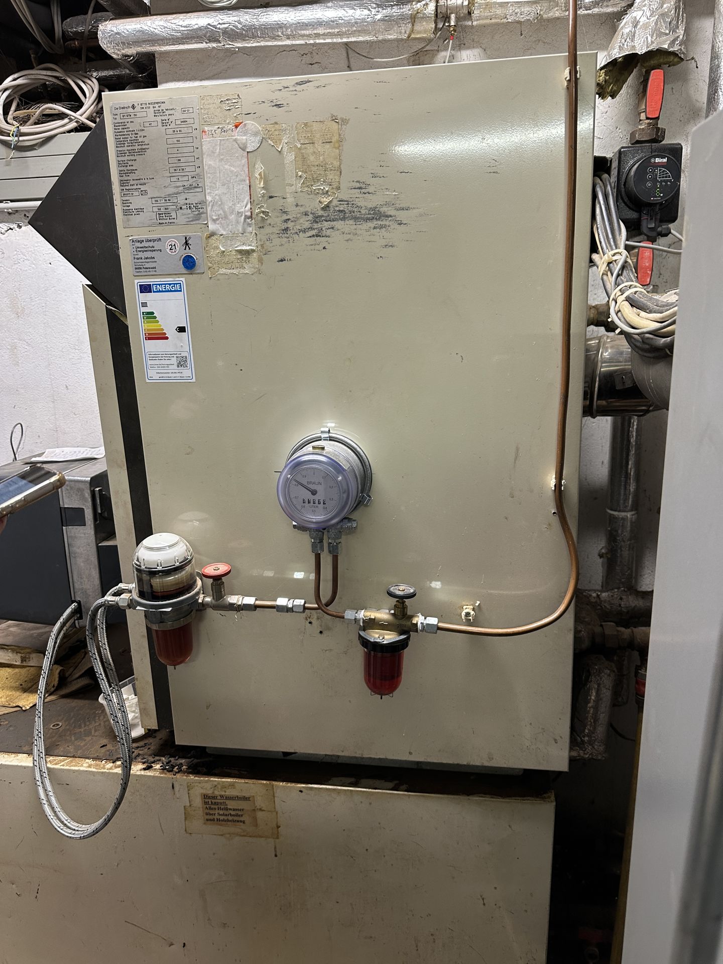 Ölzentralheizung (Niedertemperatur Heizkessle aus 1994/Brenner in 2018 erneuert); Kombinierbar mit einem Festbrennstoffofen (Holz) mit einer Nennleistung von 40 KW