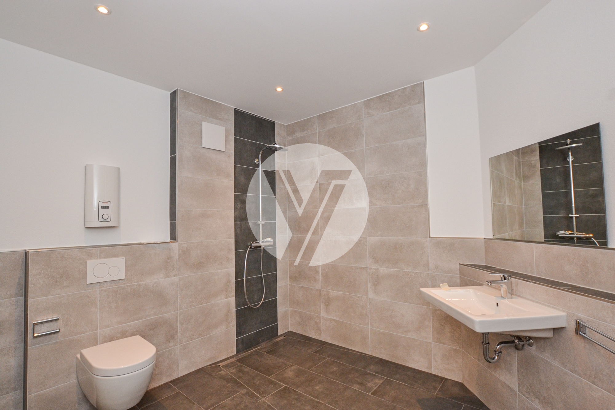 Ausgestattet ist die Wohnung mit einem ansprechenden Vinylböden in Holzoptik in den Wohnräumen sowie Fliesen in anthrazit in den Bädern. Im Mietpreis inbegriffen ist eine moderne Einbauküche inklusive Elektrogeräten. Für ein angenehmes Raumklima sorgt eine Fußbodenheizung in Verbindung mit Erdwärme.