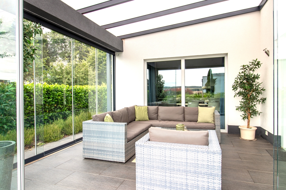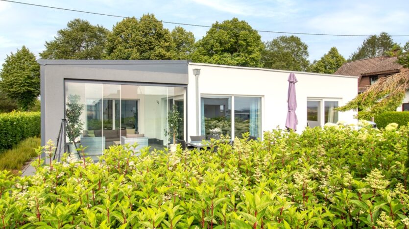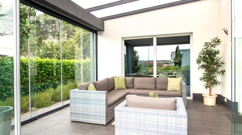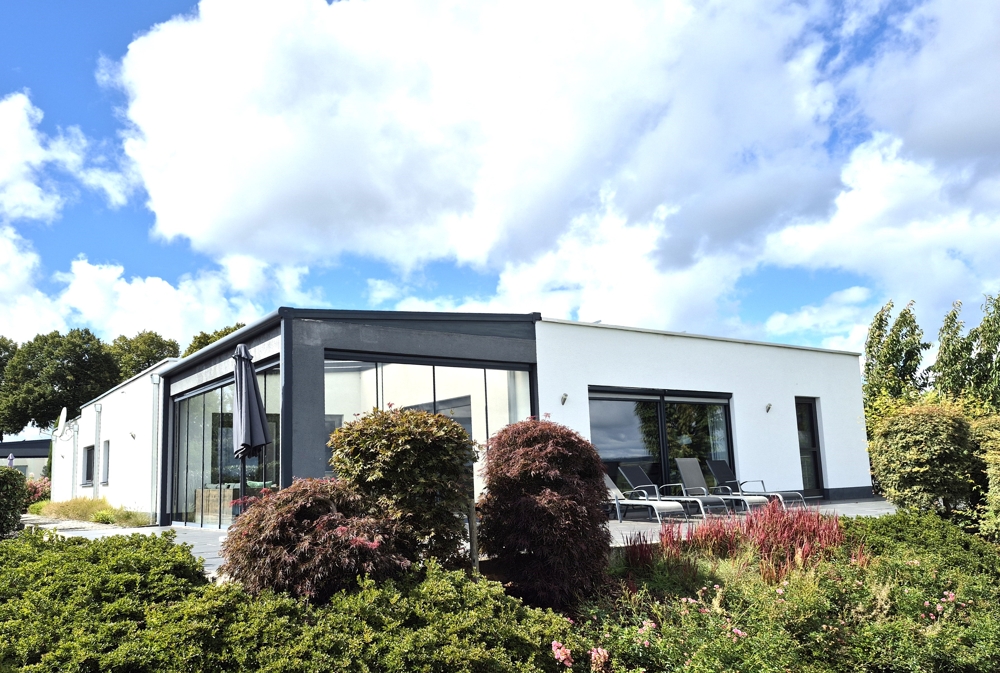 – Dreifachverglasung, viele bodentiefe Fenster mit Schiebefunktion