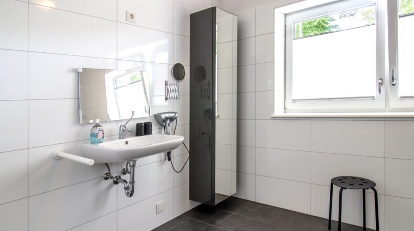 – Ein Bad, vollständig barrierefrei, ist von einem Schlafzimmer direkt zugänglich