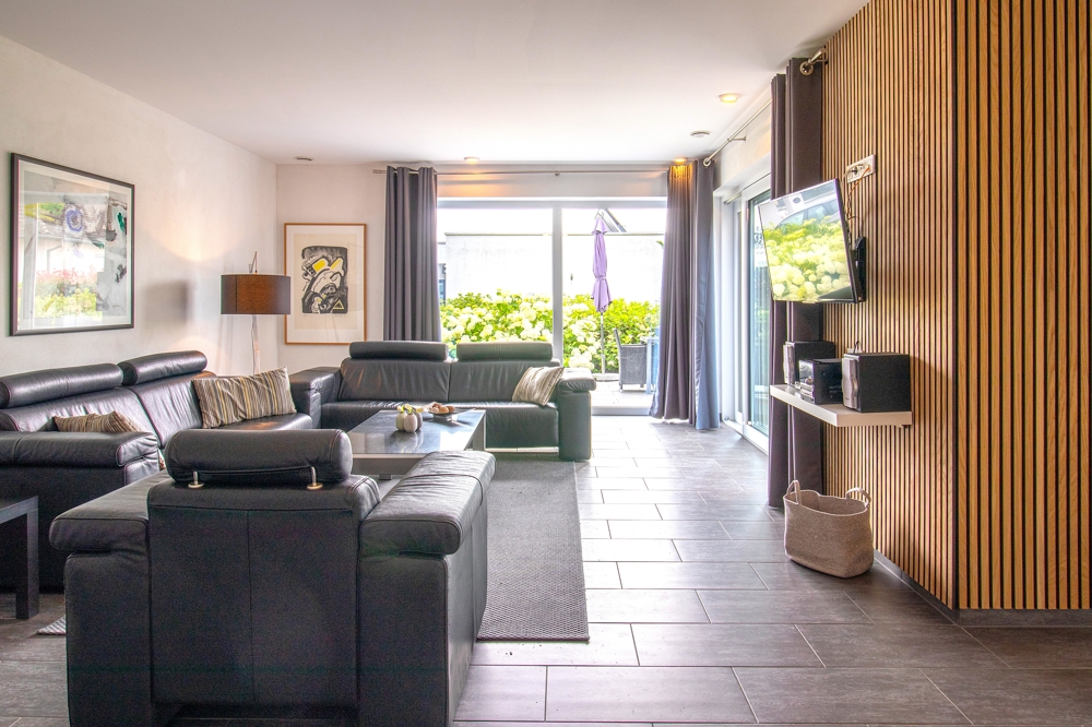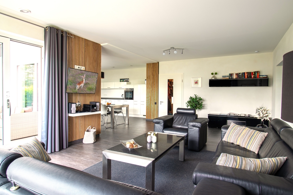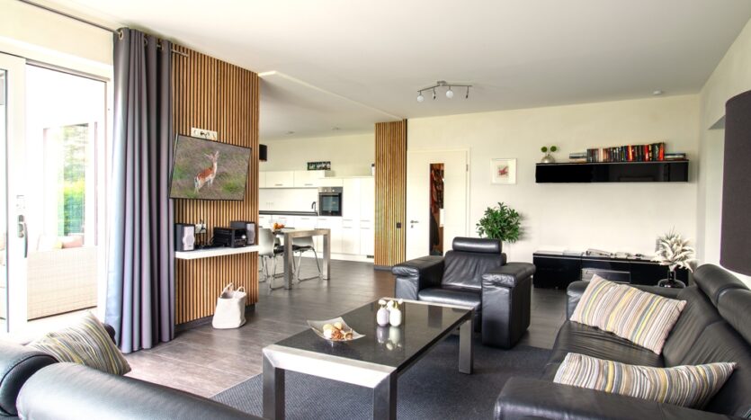 Das Objekt wurde seither ausschließlich als Ferienhaus genutzt und ist daher voll möbliert. Neben einem großen Wohn-Essbereich mit zum Wohnbereich offener Küche stehen drei Doppelschlafzimmer, zwei Bäder und ein Technikraum mit Waschmaschinenanschluss zur Verfügung. Alle Zimmer sind lichtdurchflutet.