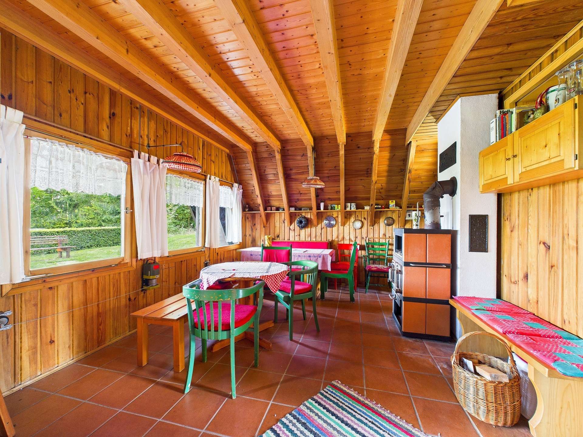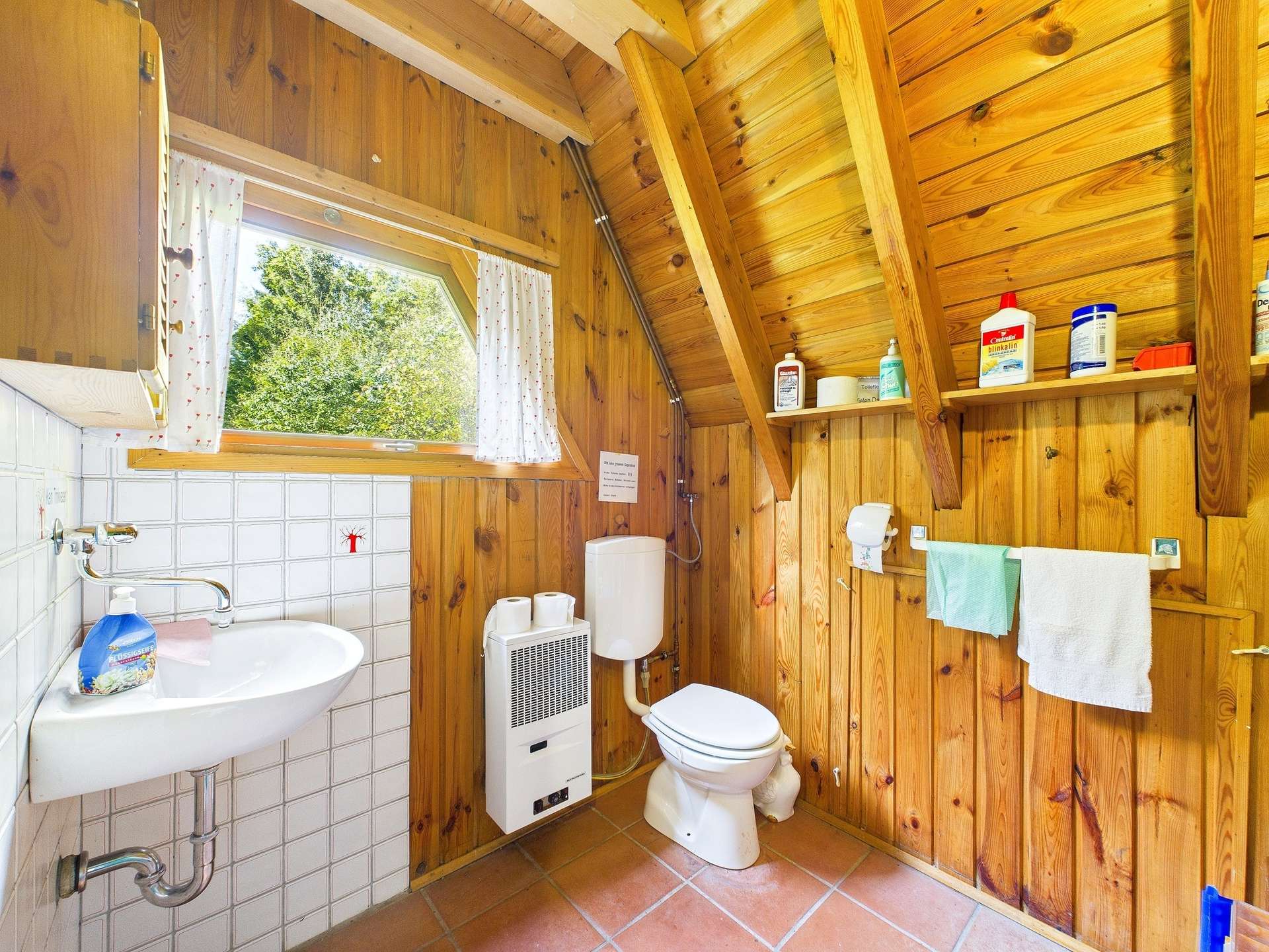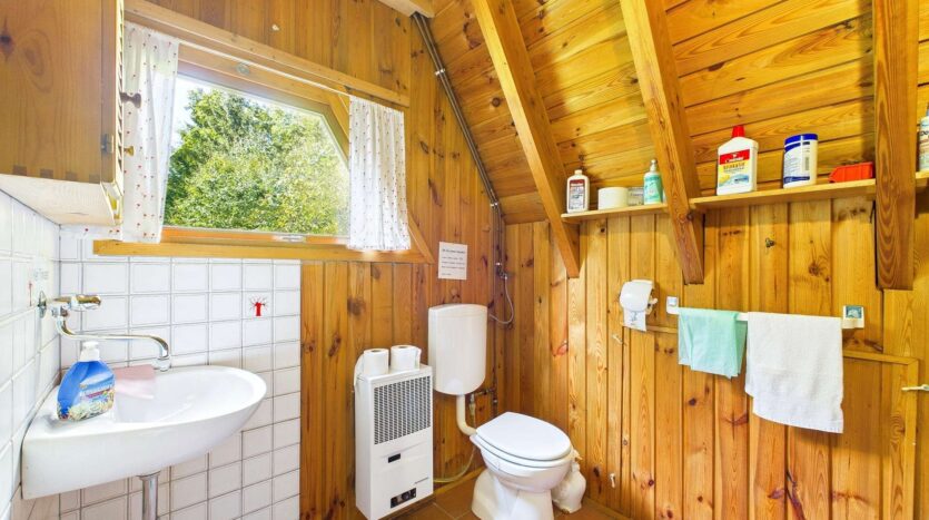 Im Erdgeschoss empfängt Sie ein gemütlicher Wohn-Essbereich mit Kaminofen – der perfekte Ort, um nach langen Spaziergängen im Wald die Seele baumeln zu lassen. Direkt angrenzend befindet sich die kleine, mit Gas betriebene Küche. Ergänzt wird diese Ebene durch ein WC. Eine klassische Dusche ist aktuell nicht vorhanden, die Wasserversorgung erfolgt über eine Regenwasserzisterne. Für naturverbundene Menschen bietet sich die Möglichkeit, eine praktische Lösung nachzurüsten – beispielsweise durch eine kompakte Außendusche, eine kleine Solardusche oder den Einbau einer cleveren Nasszelle im Haus. So entsteht ein rustikales, aber charmantes Ferienfeeling mit maximaler Nähe zur Natur.