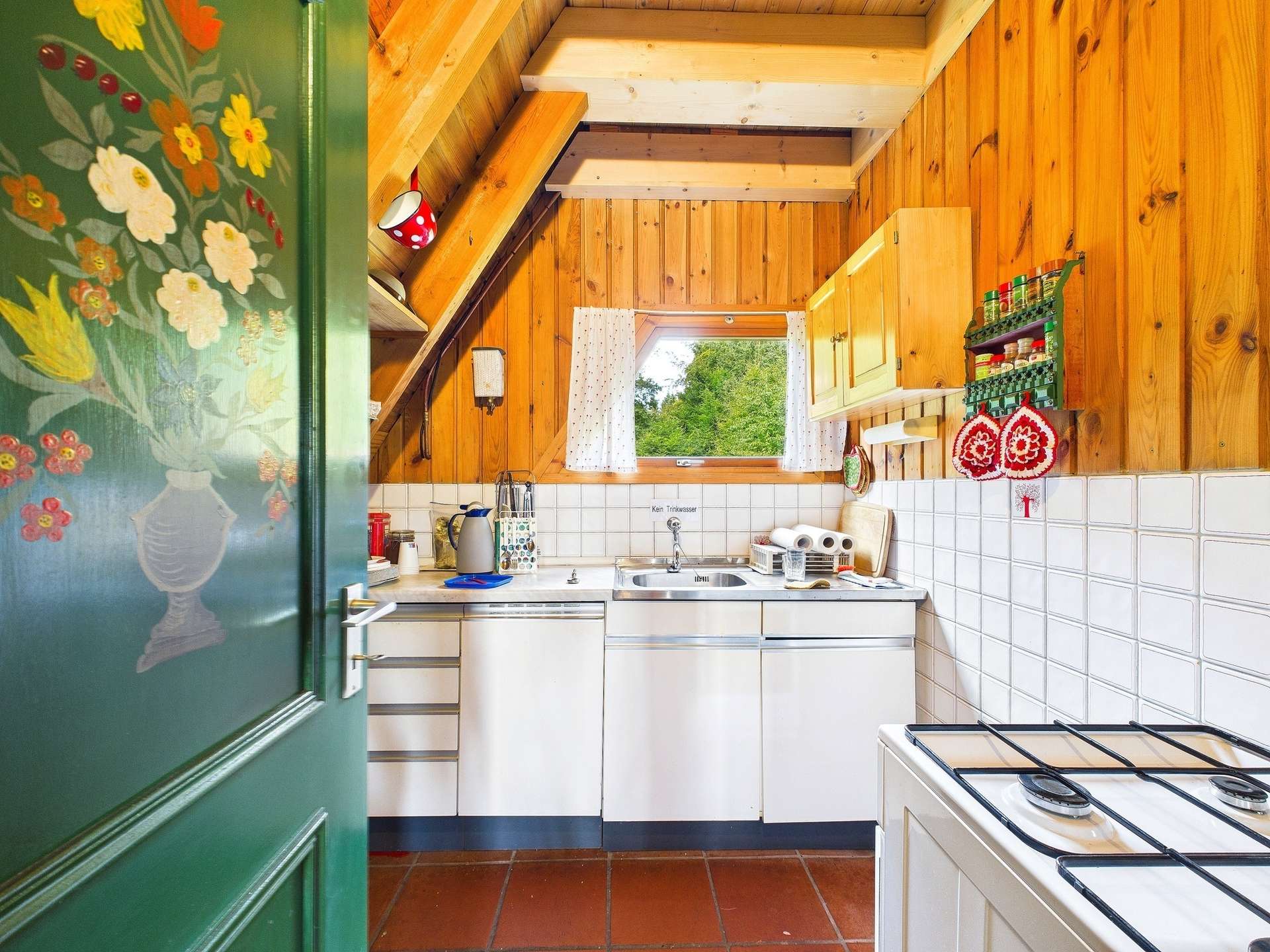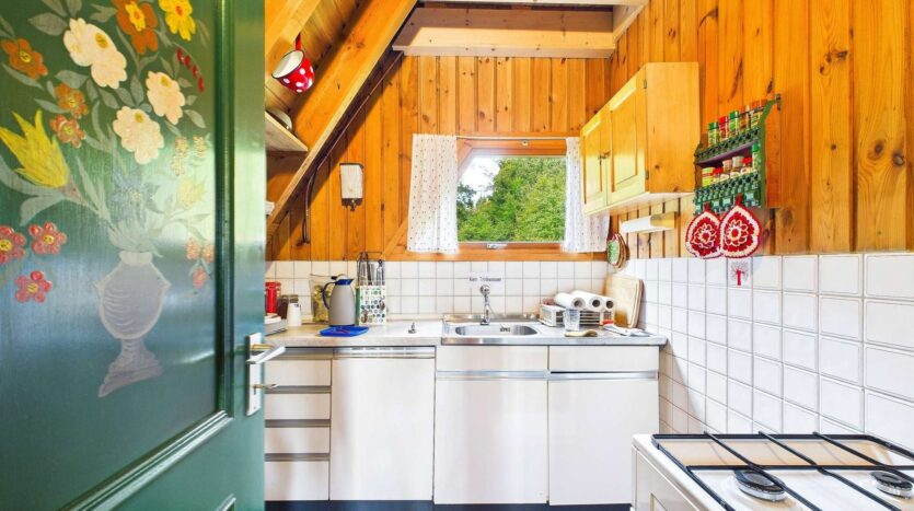 Im Erdgeschoss empfängt Sie ein gemütlicher Wohn-Essbereich mit Kaminofen – der perfekte Ort, um nach langen Spaziergängen im Wald die Seele baumeln zu lassen. Direkt angrenzend befindet sich die kleine, mit Gas betriebene Küche. Ergänzt wird diese Ebene durch ein WC. Eine klassische Dusche ist aktuell nicht vorhanden, die Wasserversorgung erfolgt über eine Regenwasserzisterne. Für naturverbundene Menschen bietet sich die Möglichkeit, eine praktische Lösung nachzurüsten – beispielsweise durch eine kompakte Außendusche, eine kleine Solardusche oder den Einbau einer cleveren Nasszelle im Haus. So entsteht ein rustikales, aber charmantes Ferienfeeling mit maximaler Nähe zur Natur.