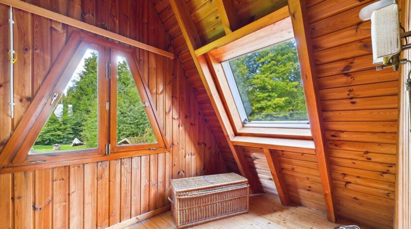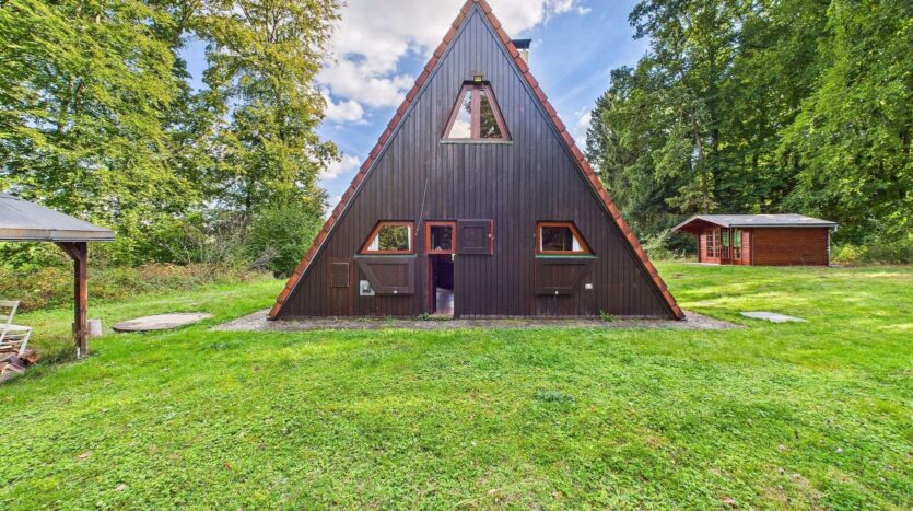 Das Haus, erbaut ca. 1975, präsentiert sich als echtes Unikat: Über zwei Etagen verteilt, bietet es rund 50 m² Wohnfläche (nach Abzug der Schrägen) und den unvergleichlichen Charme eines Ferien- oder Wochenendhauses.