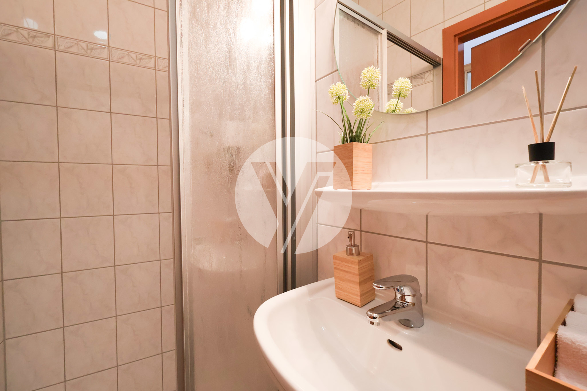 Im Obergeschoss erwartet Sie eine lichtdurchflutete Wohnung mit ca. 153 m², die kein Wunsch offenlässt. Hier finden Sie fünf geräumige Zimmer, ein großes Bad, eine abgeschlossene Küche sowie zwei gemütliche Balkone – nahezu alle Räume bieten Zugang zu diesen. Ein Schlafzimmer verfügt zusätzlich über ein kleines Duschbad, was die Nutzungsmöglichkeiten erweitert. Optional könnte dieser Bereich einfach in ein weiteres 1-Zimmer Appartement umgewandelt werden.