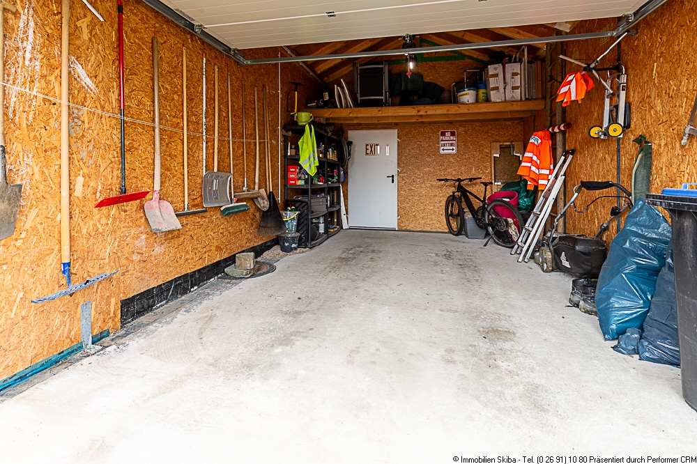 - Garage mit dahinterliegendem Technikraum und Ausgang in den Garten