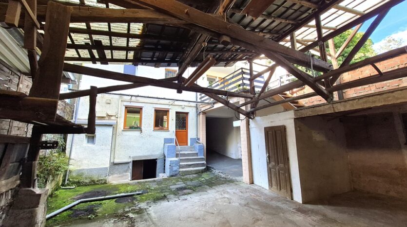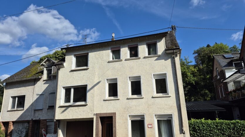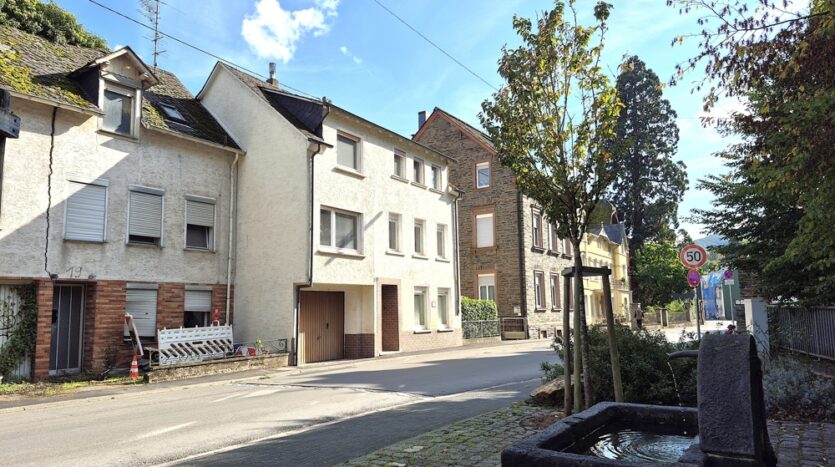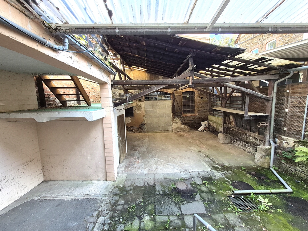Dieses Objekt wurde vor 1900 erbaut, um 1950 aufgestockt und zuletzt 1969 angebaut und renoviert. Das Holzpfettendach wurde mit Schiefer beschlagen und 1988 die aktuelle Öl-Zentralheizung eingebaut. Die doppelwandigen Öltanks mit 3000 Liter Fassungsvermögen und die Heizung stehen im Gewölbekeller. Die Durchfahrt zum rückwärtigen Grundstück kann als Garage genutzt werden.
