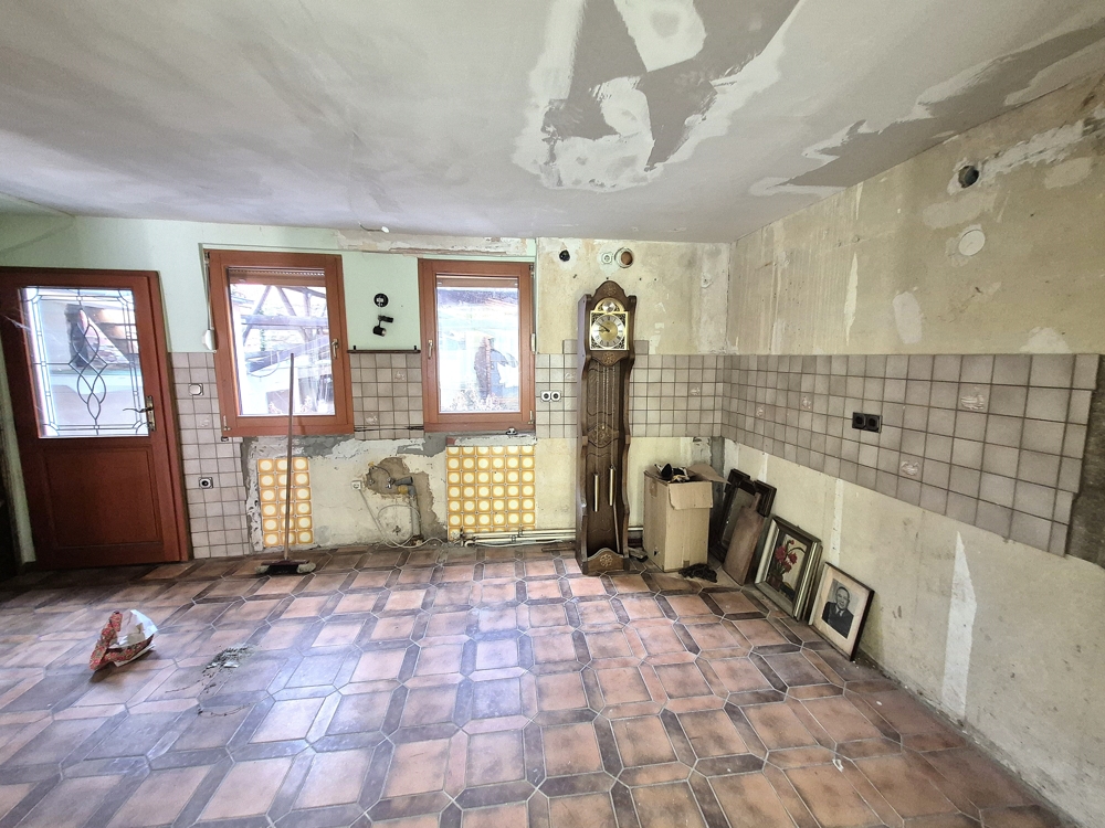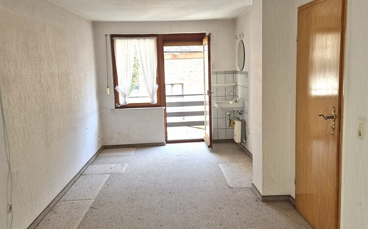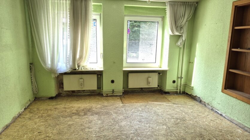 Inzwischen wurden durch einen Wasserschaden im 1. OG das Bad ausgebaut und der Fußboden im Erdgeschoss aus- und teilweise wieder eingebaut. Der zukünftige Eigentümer wird zunächst umfangreiche Renovierungs- und Modernisierungsmaßnahmen einleiten, bevor das Objekt wieder bezogen werden kann.