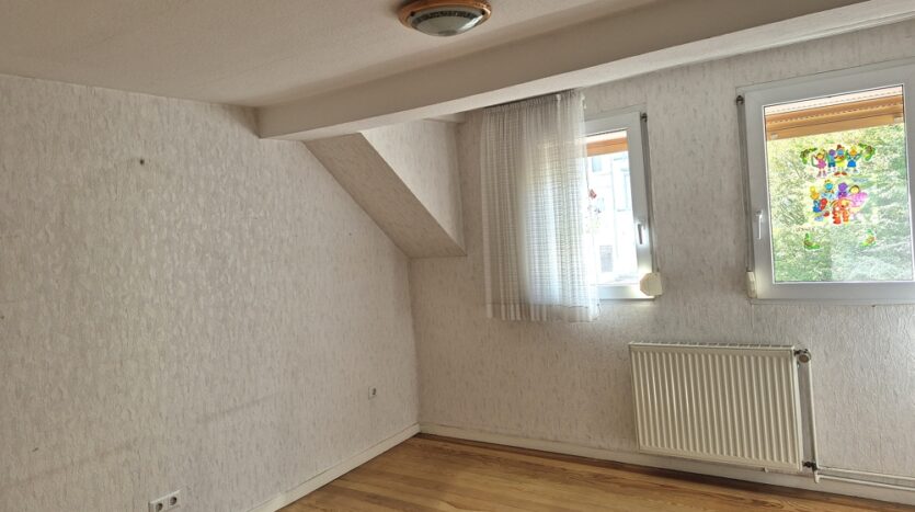 Die auf drei Etagen verteilte Wohnfläche von insgesamt ca. 136 m² bietet dann aber auch viel Raum für die Familie und ein überdachtes Hofgrundstück sowie eine Garage. Im Erdgeschoss befinden sich Küche und Esszimmer, im Obergeschoss Bad, Wohnzimmer, Schlafzimmer mit Zugang zur Terrasse und im Dachgeschoss 4 weitere Zimmer (davon eines mit Wasser-/Abwasseranschlüssen) und ein Balkon.