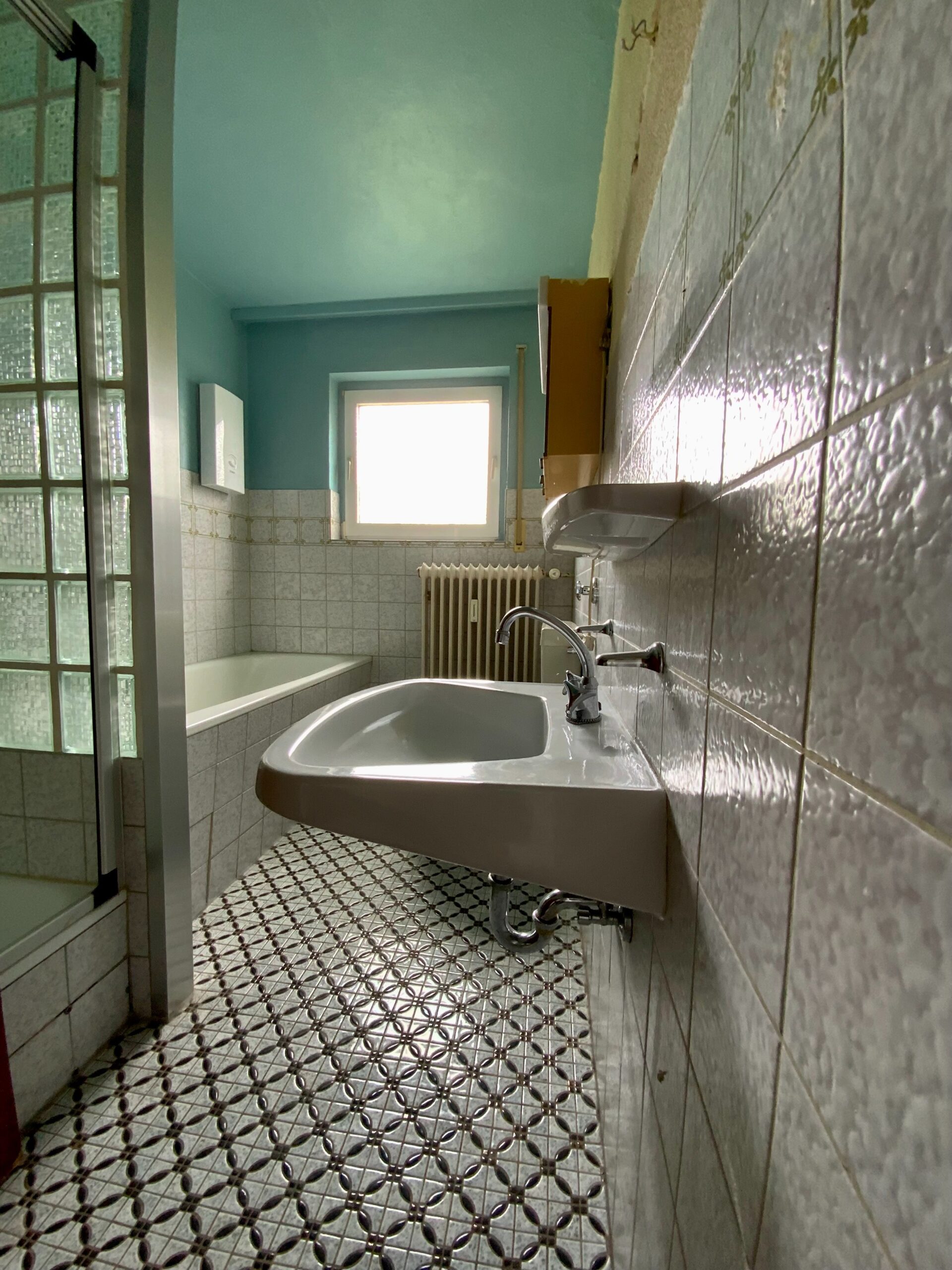 Die Wohnung im Erdgeschoss ist renovierungsbedürftig und momentan nicht vermietet.