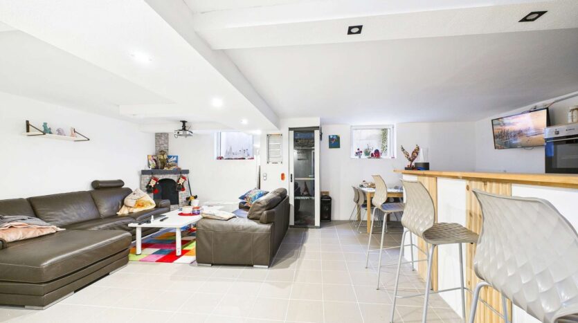 Das Untergeschoss bietet zusätzlich ca. 100 m² Nutzfläche. Ein Hobbyraum mit Küchenzeile, ein Badezimmer mit Dusche, der Heizungsraum sowie zwei Lagerräume schaffen ideale Voraussetzungen für kreative Nutzung, Stauraum oder erweiterte Wohnmöglichkeiten.