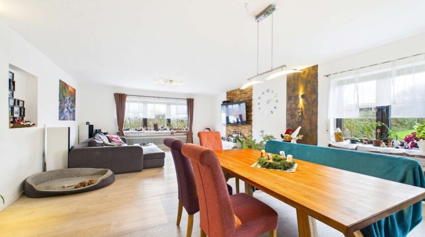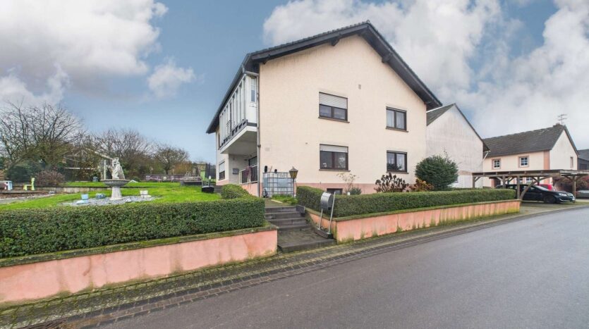 Im idyllischen Schleid bei Bitburg steht dieses eindrucksvolle Zweifamilienhaus zum Verkauf – ein Zuhause mit Charakter, Großzügigkeit und einer Atmosphäre, die sofort ein Gefühl von Ankommen vermittelt. Das massiv erbaute Wohnhaus aus dem Jahr 1976 wurde zwischen 2019 und 2021 umfassend und mit viel Sorgfalt renoviert, sodass es heute in einem modernen und gepflegten Gesamtzustand erstrahlt. Insgesamt bietet die Immobilie ca. 340 m² Wohnfläche und rund 123 m² Nutzfläche auf einem 914 m² großen Grundstück, das genügend Raum für Rückzug, Freizeit und Entfaltung lässt. Ein Carport für zwei Fahrzeuge sowie ein zusätzlicher Außenstellplatz runden das Angebot ab. Der Zugang erfolgt entweder über einen gepflasterten, ebenerdigen Weg oder alternativ über zwei Stufen.