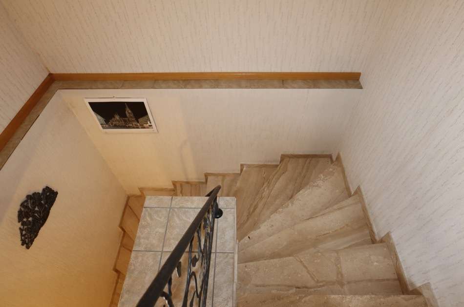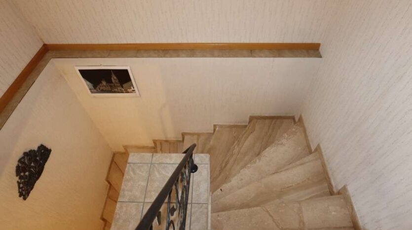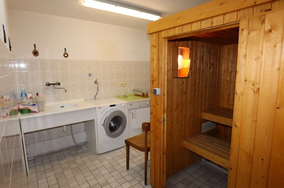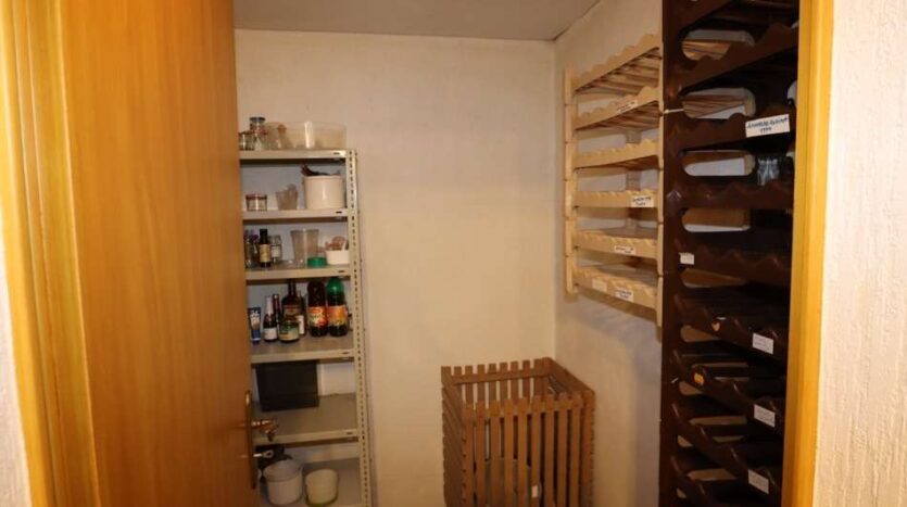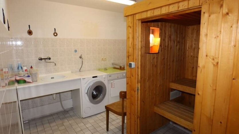 Kellergeschoss: Nebeneingang, Flur, 2 Schlafzimmer, Wohnzimmer, Bad mit Dusche und WC, HWR mit Sauna, Abstellraum, Heizungsraum, Trenntür zur Diele und Treppenhaus, Weinkeller, HAR.