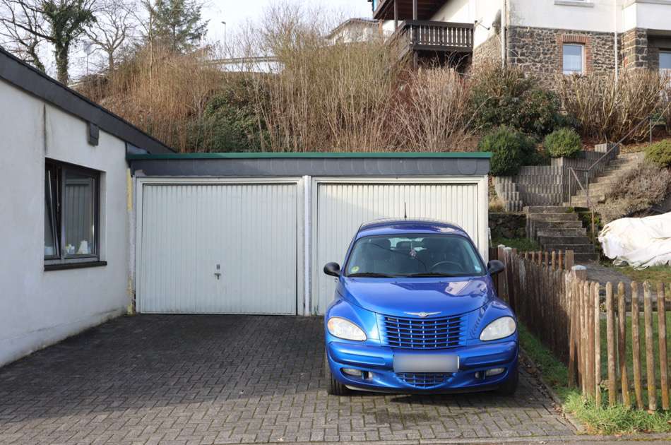Das Grundstück ist insgesamt 707 m² groß. Eine gut begehbare Treppe führt vom Haus hinunter zu zwei Garagen mit befestigtem Bereich vor den Garagentoren. Ein Teil des daneben liegenden Gartens gehört ebenfalls mit zum Objekt.
