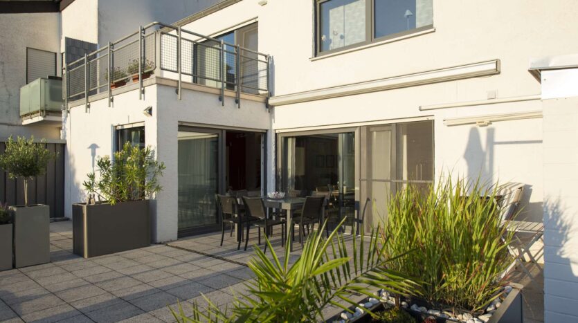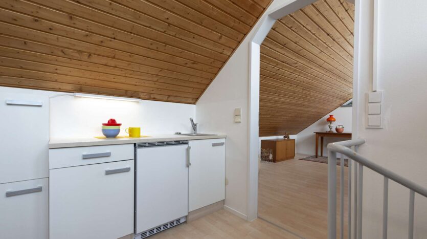 Die separat zugängliche, aber auch intern erreichbare mögliche Einliegerwohnung bietet rund 88 m² Wohnfläche auf zwei Etagen und überzeugt mit flexiblen Nutzungsmöglichkeiten: Ob als Büro, für erwachsene Kinder, zur Vermietung oder für die Großeltern – hier sind Ihnen keine Grenzen gesetzt. Im Erdgeschoss befinden sich ein Wohnzimmer, ein Raum der ideal als Küche genutzt werden kann sowie ein Duschbad. Im Obergeschoss ergänzt eine kleine Singleküche mit offenem Essbereich sowie zwei weitere Zimmer das Raumangebot. Die eigene Dachterrasse der Einliegerwohnung bietet zusätzliches Wohlfühlpotenzial.