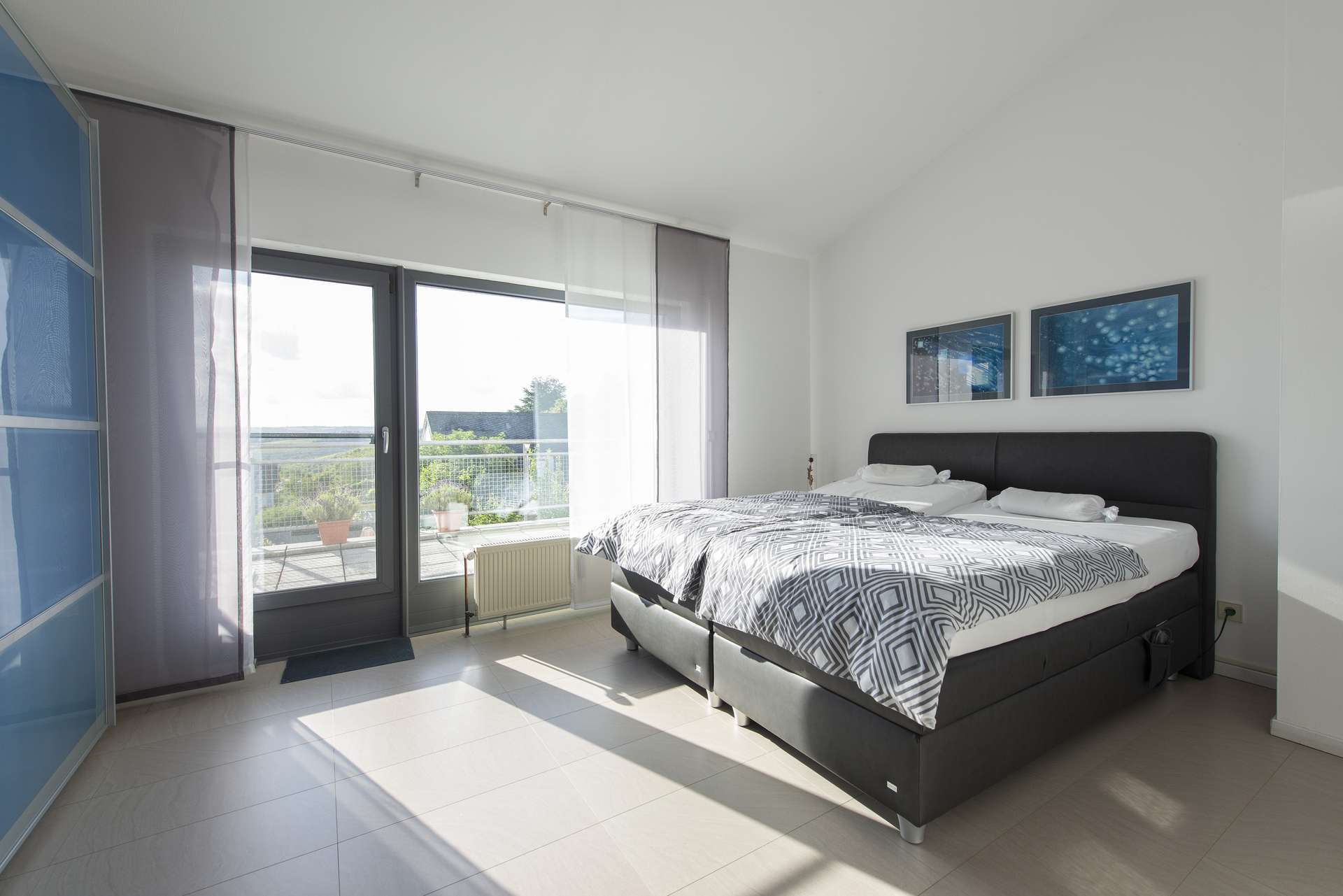 Im Obergeschoss erwarten Sie bis zu drei gut geschnittene Schlafzimmer, eines davon mit Balkon und traumhaftem Fernblick ins Grüne – ein Ort zum Durchatmen! Das stilvolle Familienbad wurde 2021 vollständig saniert und begeistert mit hochwertiger Ausstattung, bodentiefer XXL-Dusche und modernem Design.