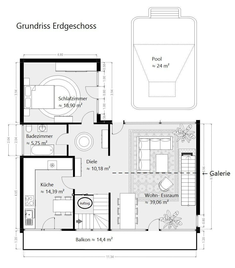 Terrasse: vorhanden, inkl. Pool (6 m x 4 m)
