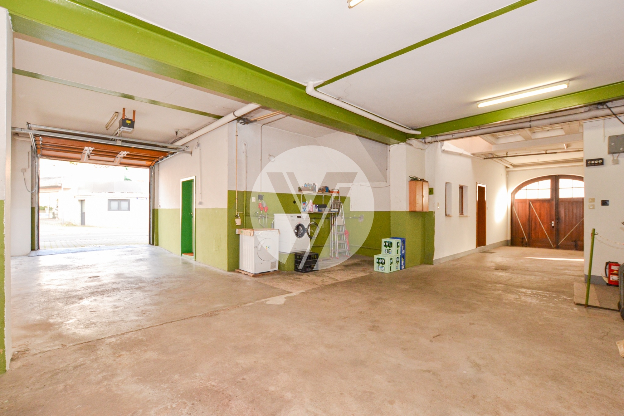 Das geräumige Erdgeschoss ist ideal strukturiert, bestehend aus einer großen Durchfahrt, einem Kelterraum sowie der ehemaligen Probierstube, die heute als Ladenlokal oder Vinothek genutzt werden kann. Die doppelte Toreinfahrt ermöglicht eine bequeme Zufahrt aus zwei Richtungen, was maximale Flexibilität und Komfort in der Nutzung bietet. Die exponierte Lage im Kreuzungsbereich sichert zudem hohe Sichtbarkeit und damit eine attraktive Präsentation Ihres Gewerbes.
