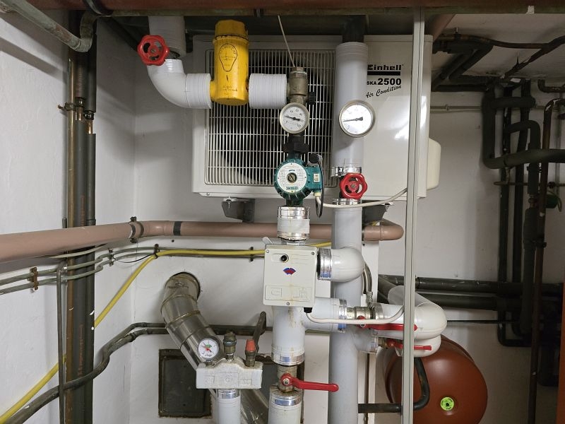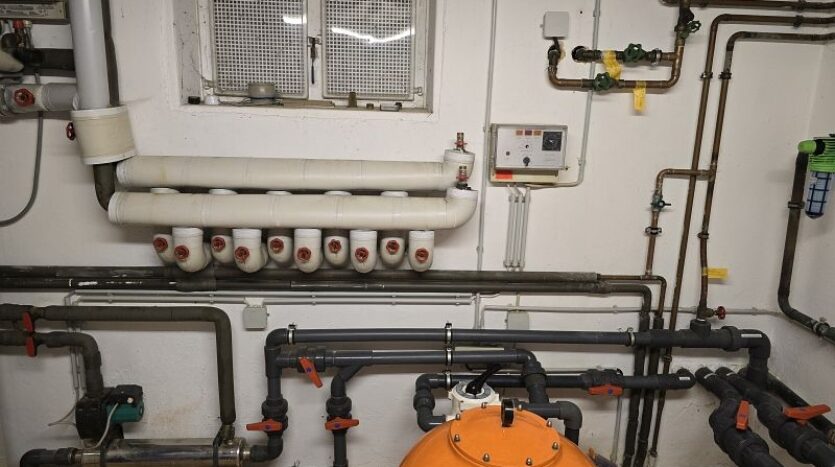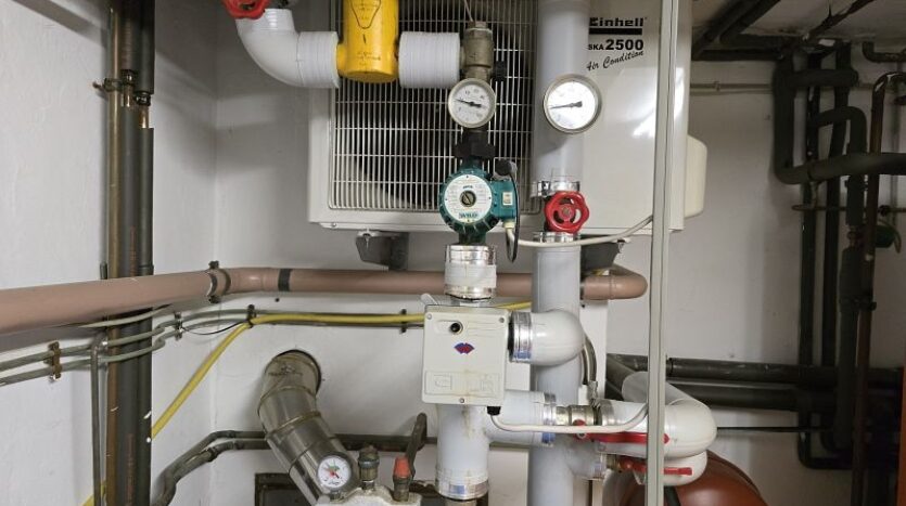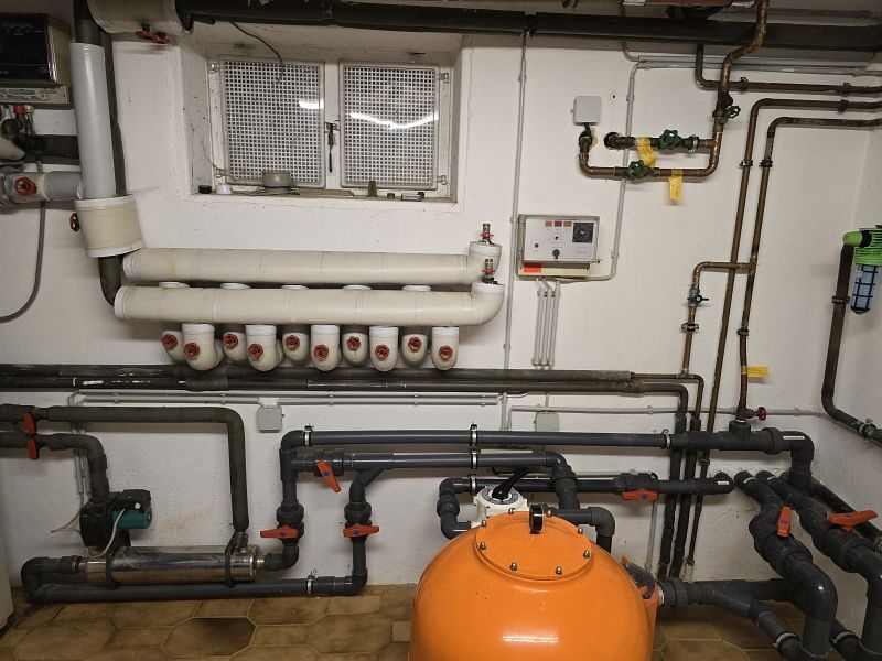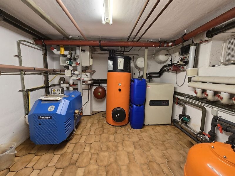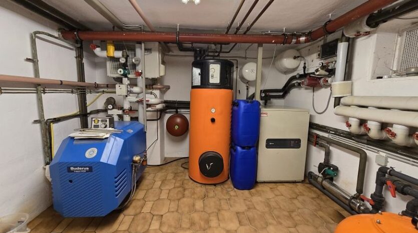 Die vorhandene Ölheizung kann je nach Jahreszeit zum schnelleren Aufheizen des Außenpools zugeschaltet werden.