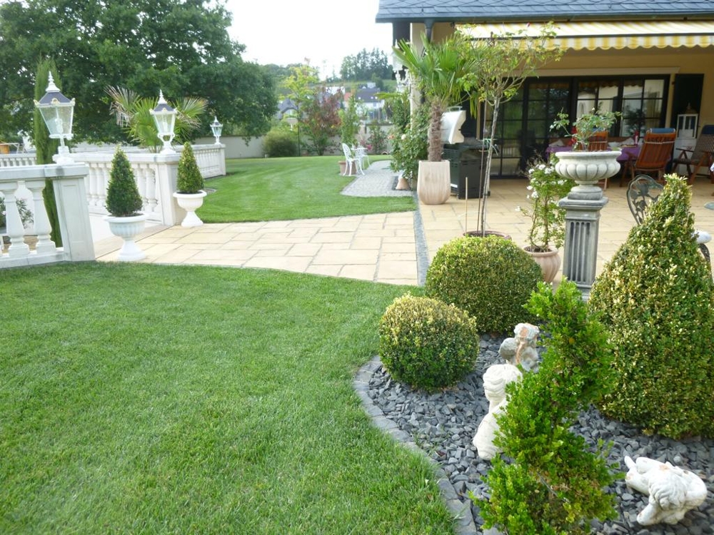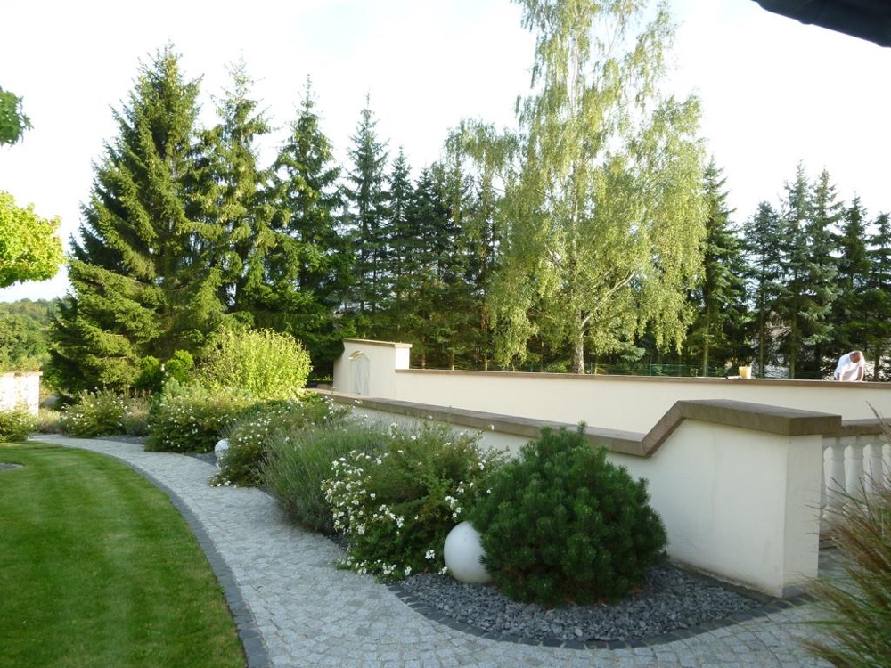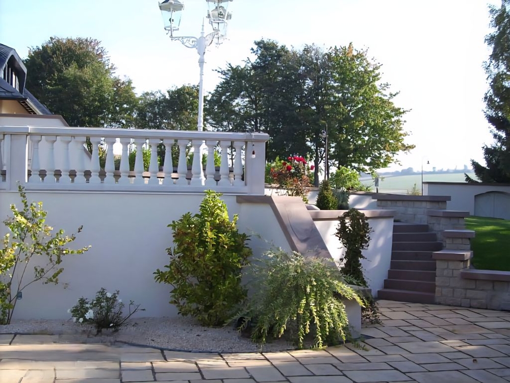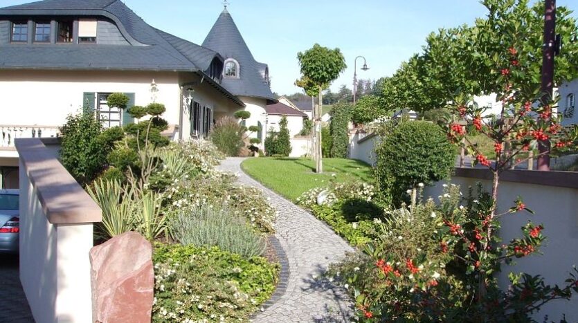 Alle Gehwege sind befestigt und größtenteils mit Granitsteinen gepflastert.