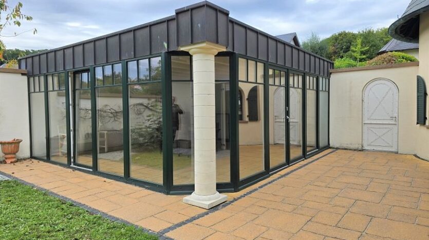 Neben dem Wohnhaus wurde ein sehr hochwertiger und schöner Wintergarten (ca. 7,30 x 6,80 Meter) errichtet. Dieser lichtdurchflutete Raum vermittelt zu jeder Jahreszeit das passende Wohlfühlklima.