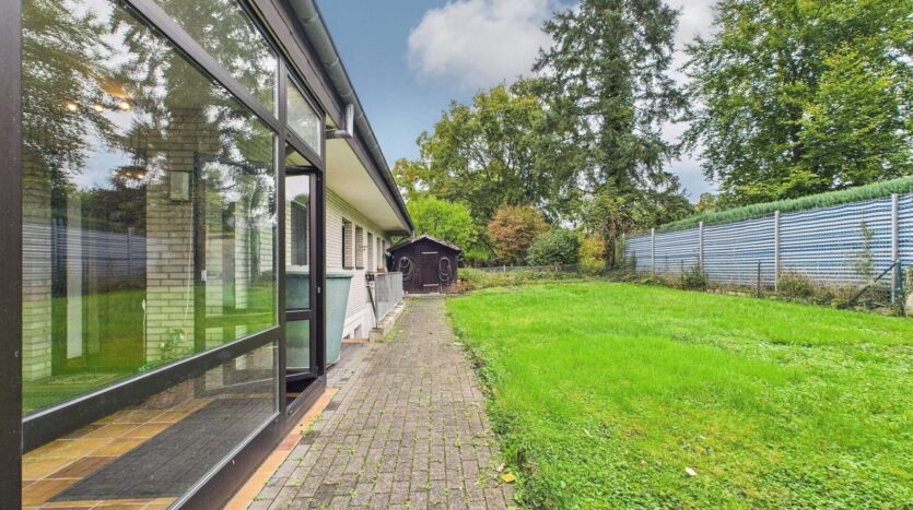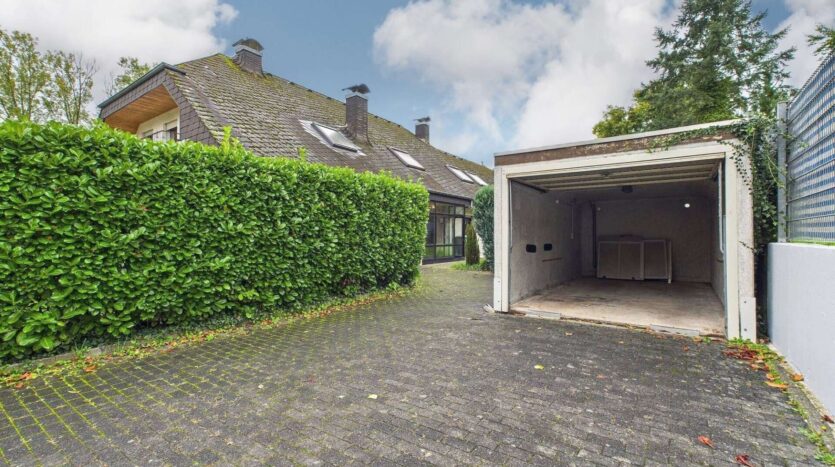 Zur Hauptwohnung gehört eine große Doppelgarage mit Dachboden, die weiteren Stauraum schafft. Der dazugehörige Garten bietet reichlich Platz zur Erholung. Die Terrasse des Haupthauses hat sich mit der Zeit etwas gesetzt und sollte neu angelegt werden – ein klarer Vorteil für den Käufer, der sich hier seine persönliche Wohlfühlterrasse ganz nach eigenen Vorstellungen gestalten kann.