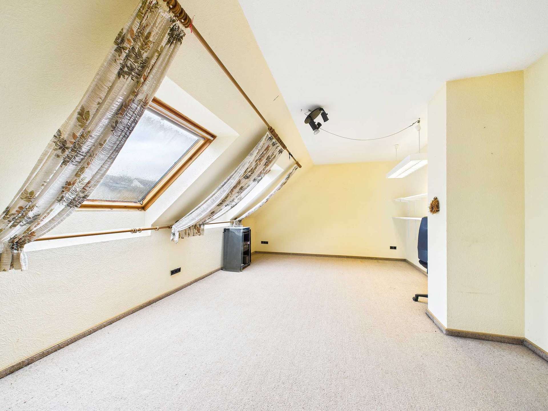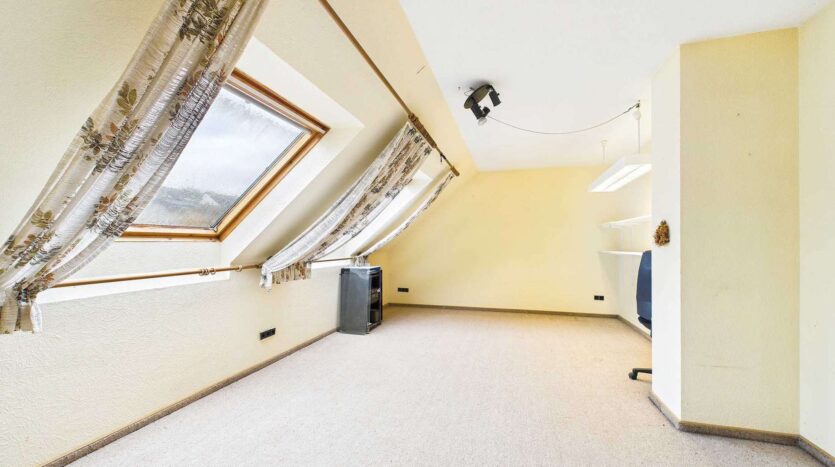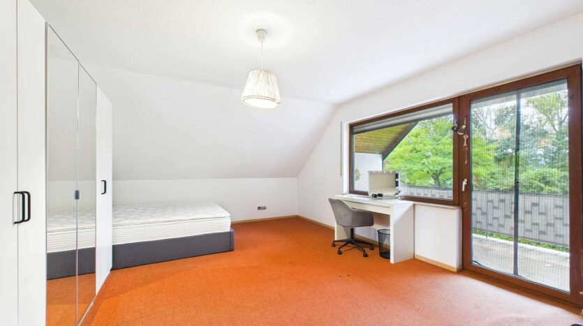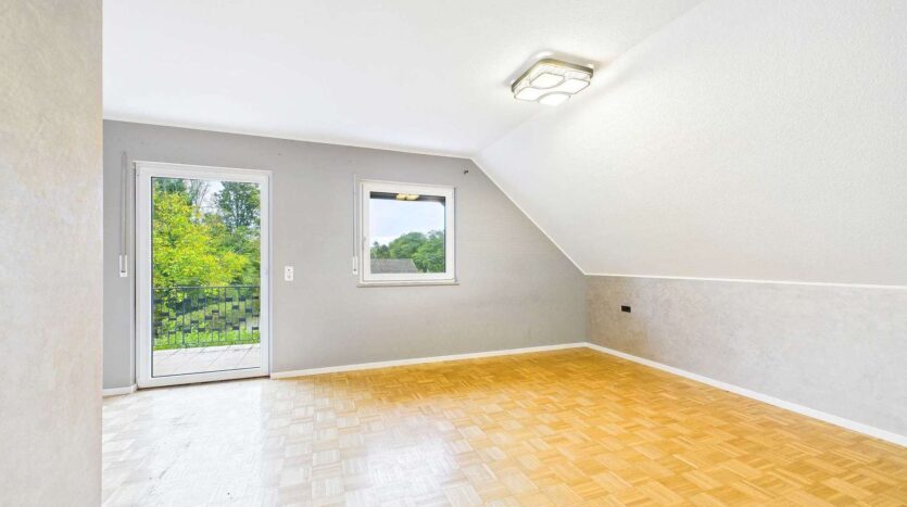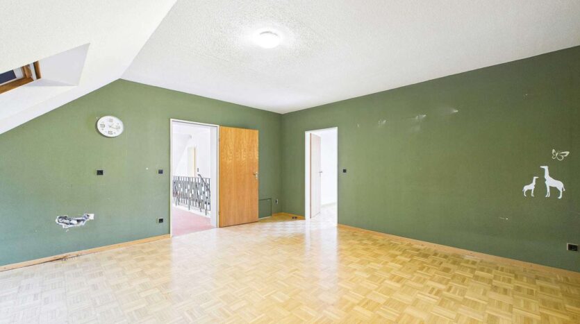 Im ausgebauten Dachgeschoss erwarten Sie bis zu vier Schlafzimmer, die unterschiedlich genutzt werden können – beispielsweise als Kinder-, Gäste- oder Arbeitszimmer. In einem der Räume besteht sogar die Möglichkeit, eine Küche zu installieren, was zusätzliche Flexibilität für individuelle Wohnkonzepte bietet. Eines der Zimmer verfügt über einen Balkon, der einen schönen Blick ins Grüne ermöglicht. Ergänzend dazu stehen ein Wannenbad sowie ein separates WC zur Verfügung. Auf Wunsch ließe sich beides zu einem großzügigen Wellnessbad zusammenführen. Die oberste Geschossdecke ist gedämmt, der Dachboden bietet zusätzlichen Stauraum.