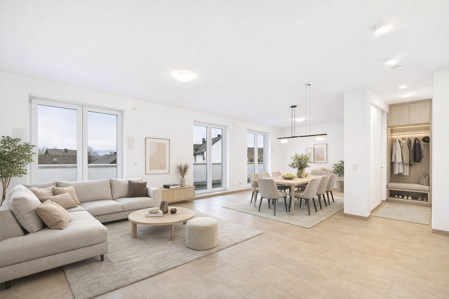 Insgesamt handelt es sich um eine moderne Penthouse-Wohnung mit großzügigen Außenflächen, hoher Privatsphäre und zeitgemäßer Ausstattung in einem jungen, gepflegten Mehrfamilienhaus.