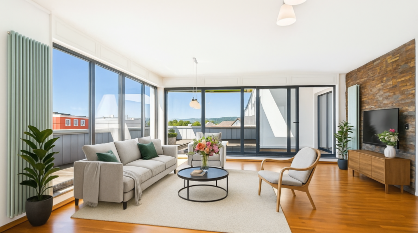 Diese großzügige Penthouse-Wohnung vereint durchdachtes Wohnen mit stilvoller Ausstattung und einem traumhaften Ausblick – ein echtes Wohnhighlight für alle, die urbanes Leben mit hochwertigem Komfort verbinden möchten.