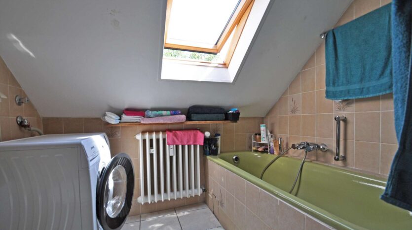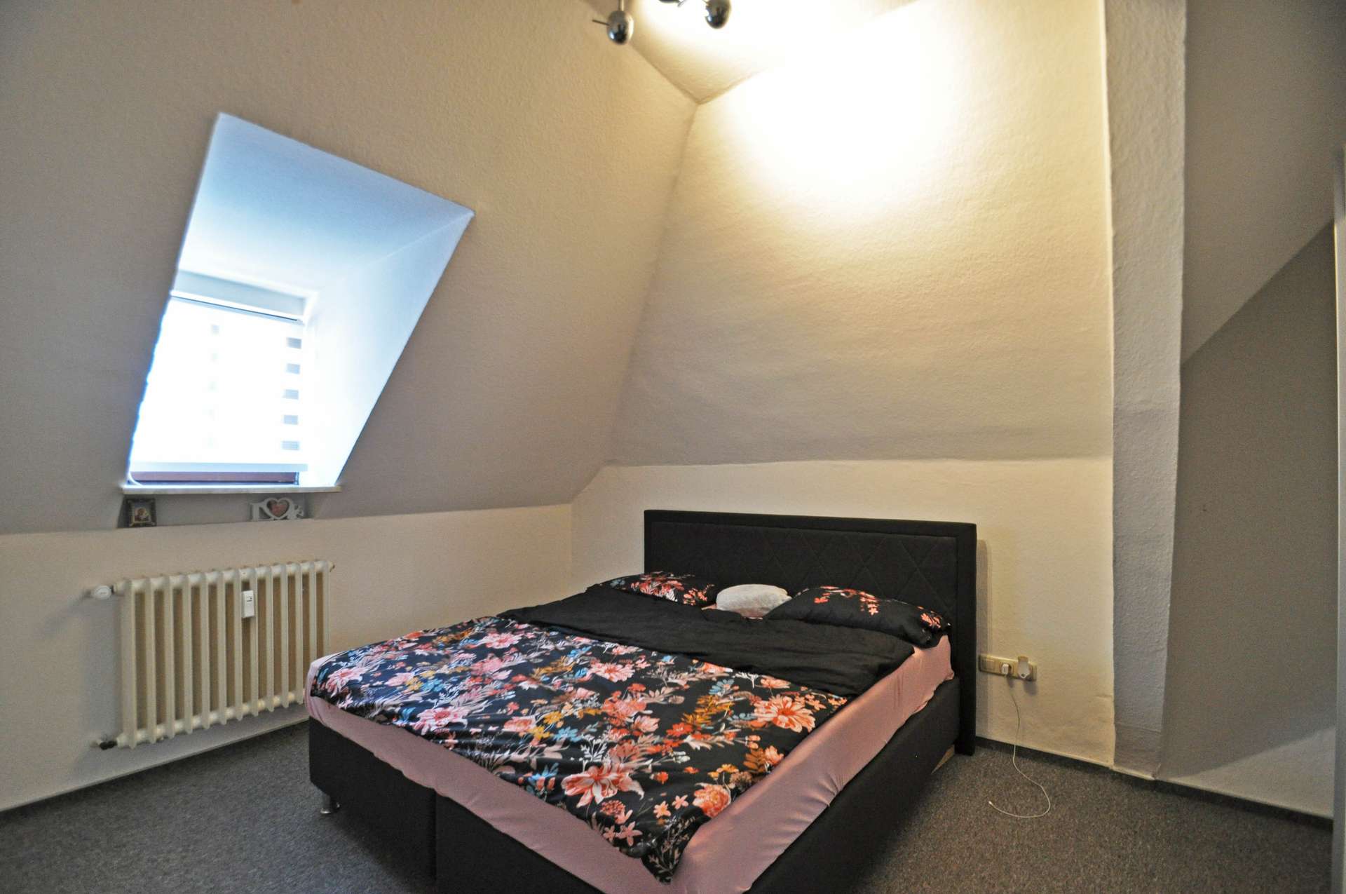 Über das Treppenhaus erreichen Sie das zweite Obergeschoss. Beim Betreten der Wohnung führt die zentrale Diele in alle Räume. Die Wohnung verfügt über ein Schlafzimmer, ein Wohnzimmer, eine Küche sowie ein Badezimmer.