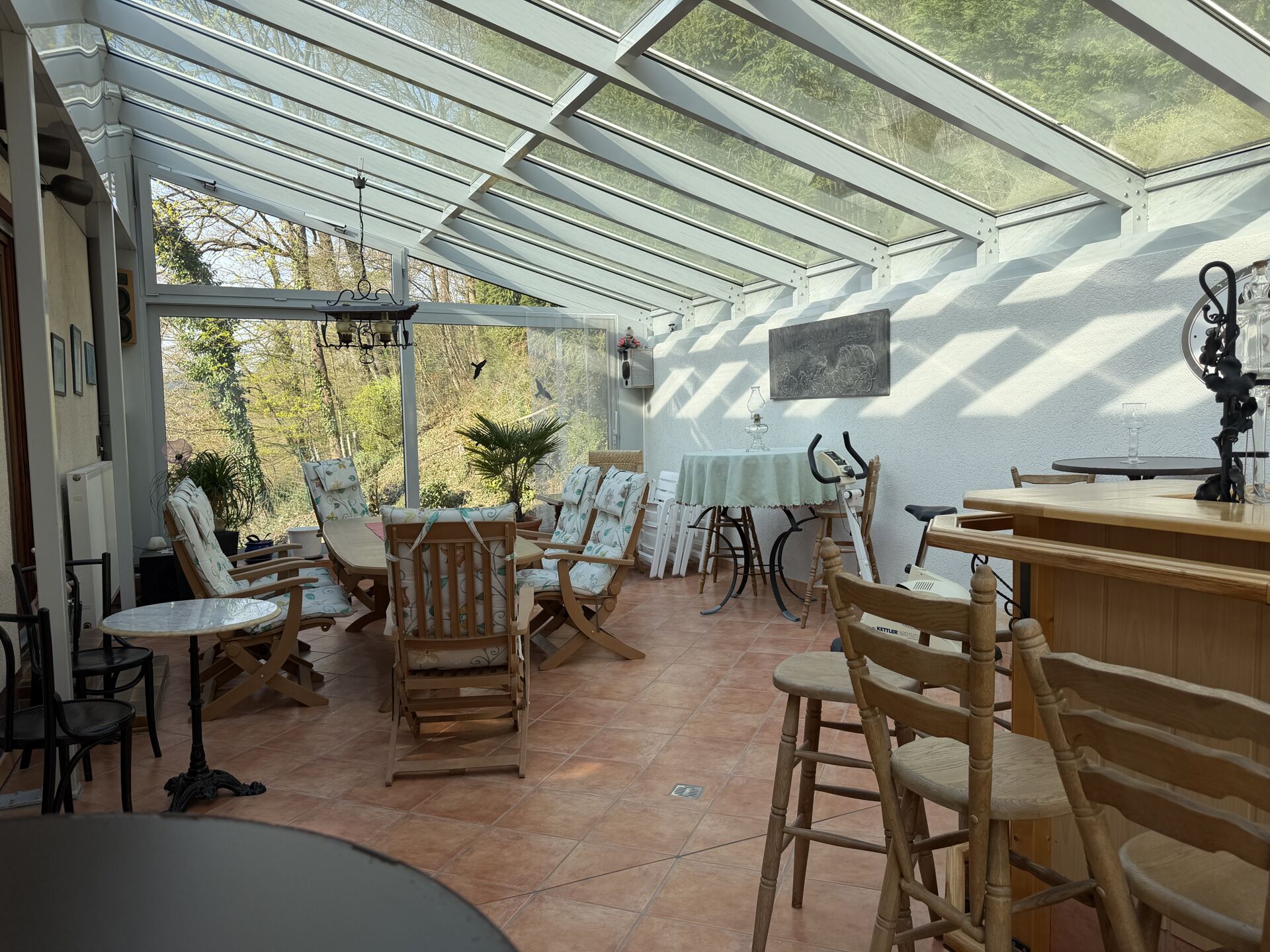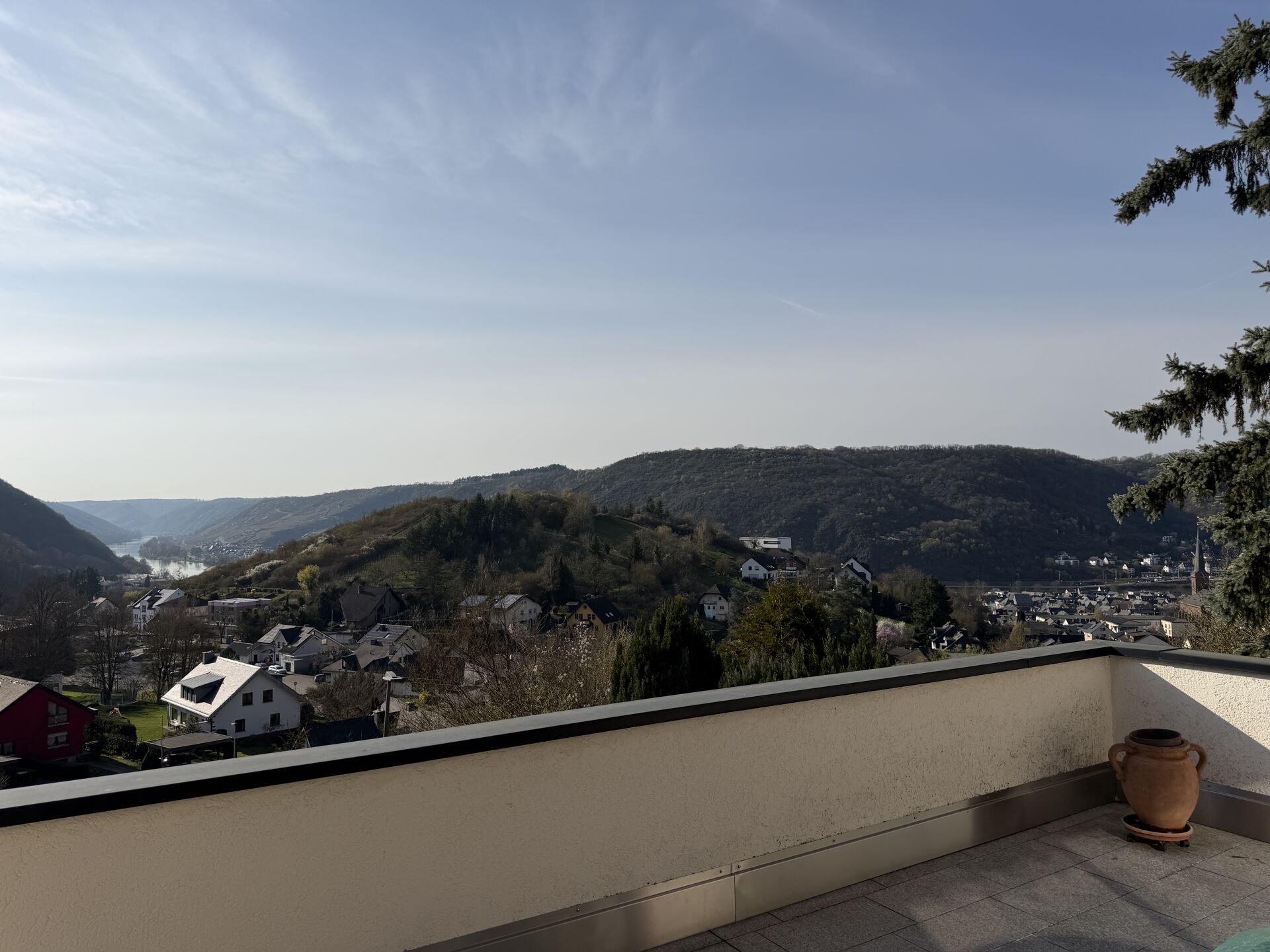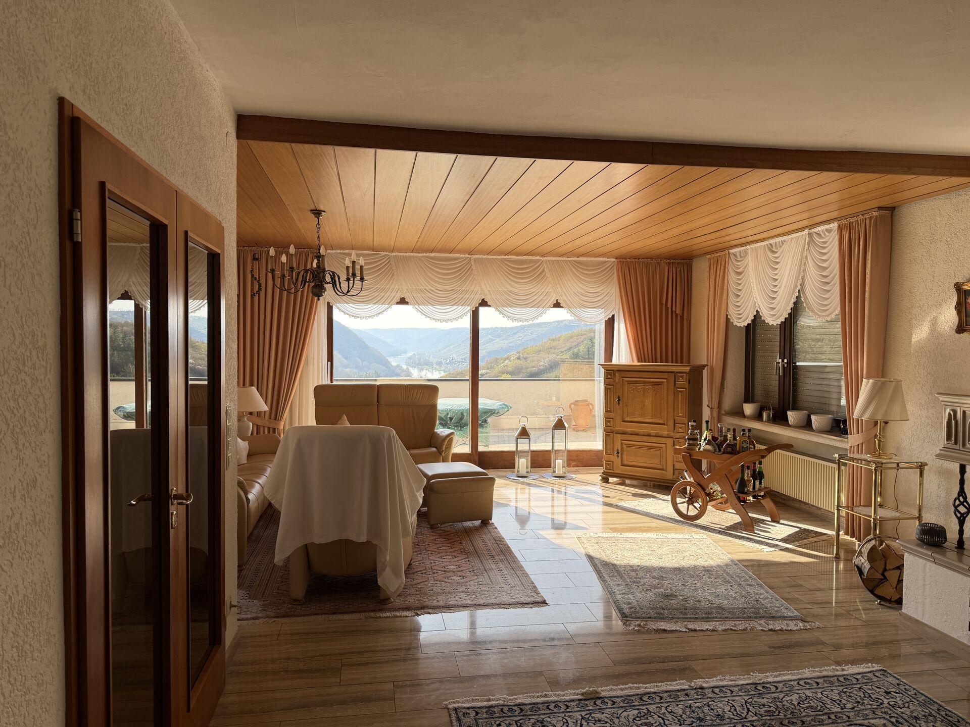 Ein echtes Highlight sind die beiden großzügigen Terrassen, von denen Sie einen herrlichen Ausblick auf Treis-Karden und die Mosel genießen können – perfekt für entspannte Stunden oder gesellige Abende. Ergänzt wird das Angebot durch einen Wintergarten, der sich ideal für Feiern, gemütliche Zusammenkünfte oder als zusätzlicher Rückzugsort eignet.