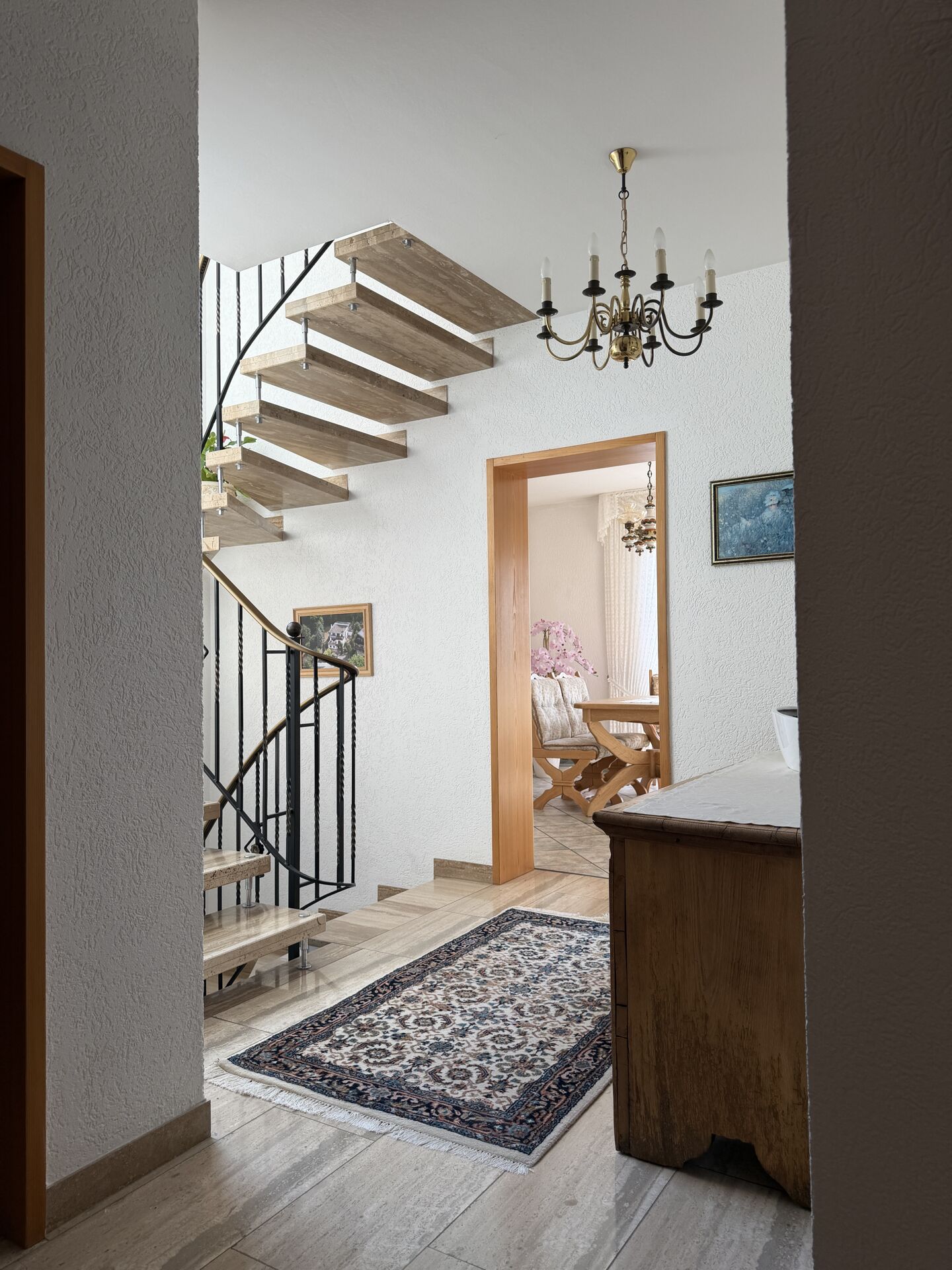 Die Ausstattung überzeugt durch eine gelungene Kombination aus Fliesen-, Laminat- und edlen Marmorböden, die dem Haus einen hochwertigen und zeitlosen Charakter verleihen. Mit insgesamt drei Badezimmern ist auch für größeren Platzbedarf bestens gesorgt.