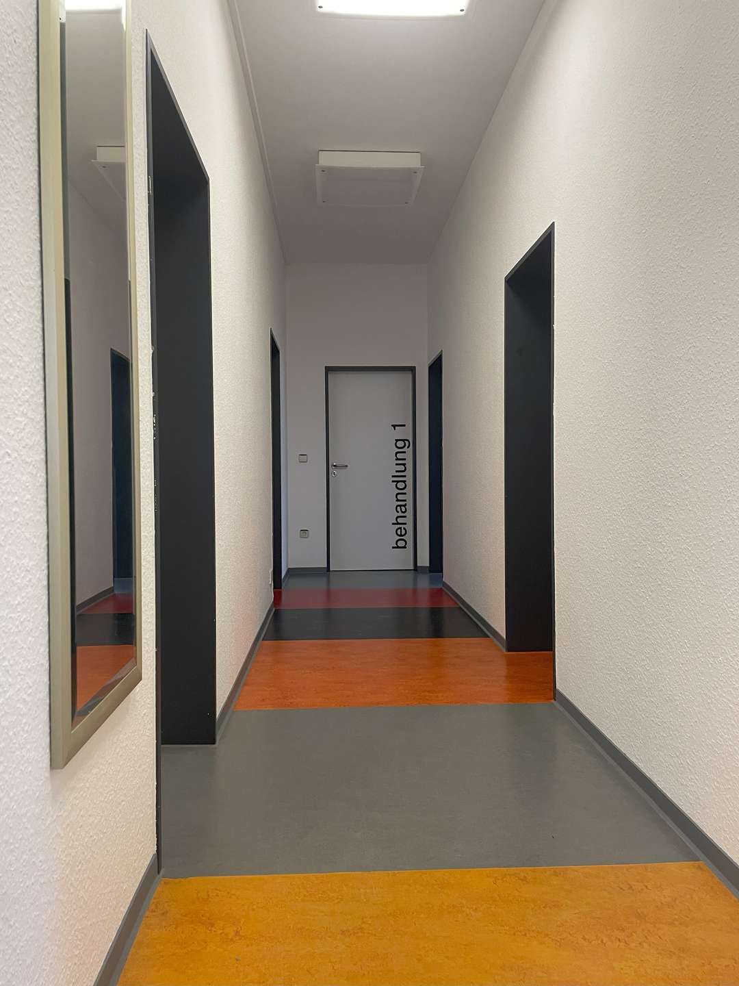 Flur, Anmeldung, 10 Räume, Wartebereich, Küche, zwei Toiletten, zwei Abstellräume.